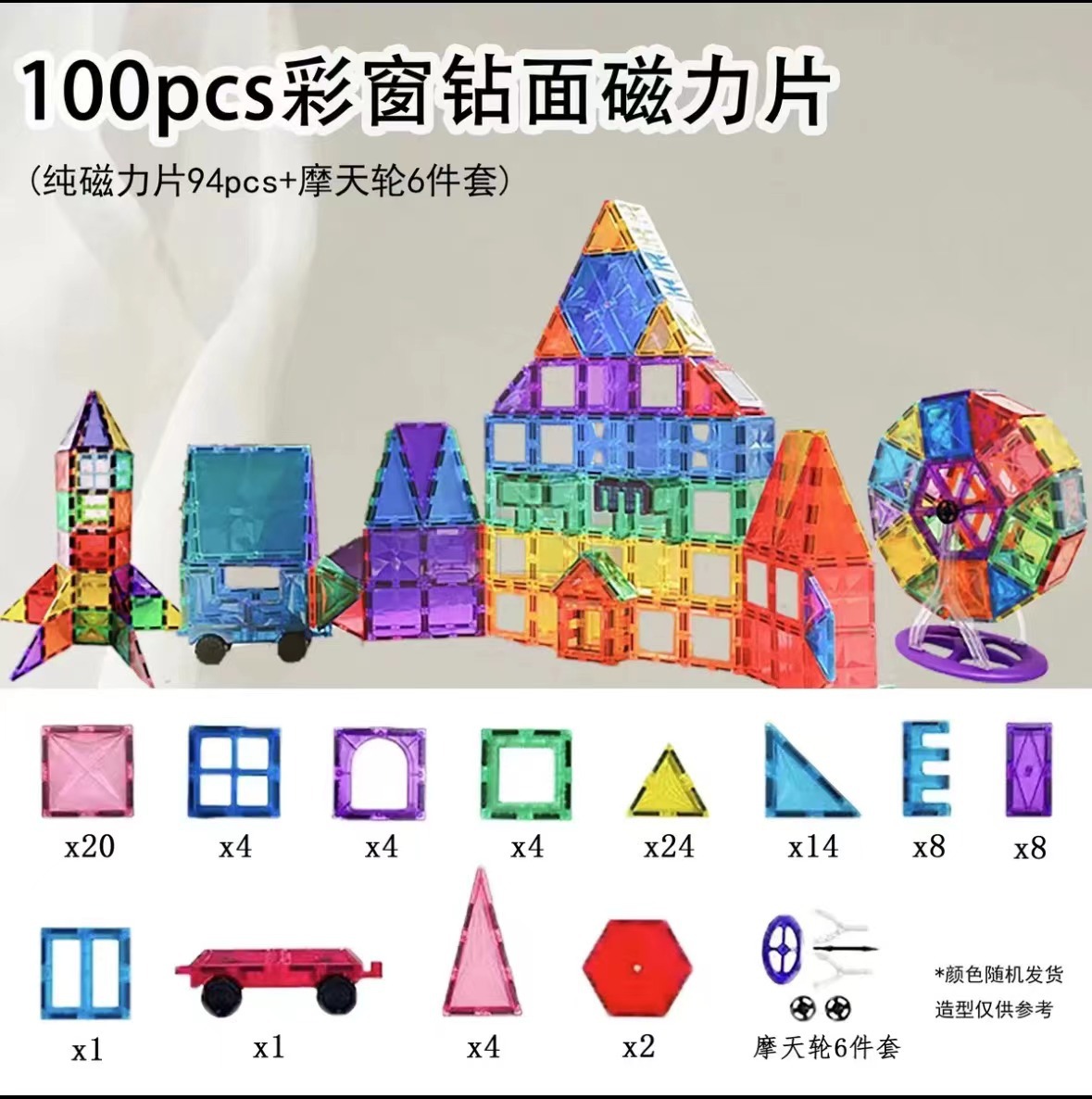 Детские большие цветные оконные магнитные пластины 100 штук колеса обозрения с магнитным сращением