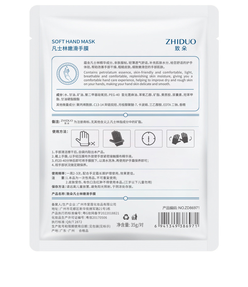 Маска для рук Zhiduo Vaseline Smooth 35 г/пара (15 упаковок); Chiduo Вазелиновая гладкая маска для рук 35 г/пара (30 упаковок); Chiduo Вазелиновая гладкая маска для рук 35 г/пара (50 упаковок); Chiduo Вазелиновая гладкая маска для рук 35 г/пара