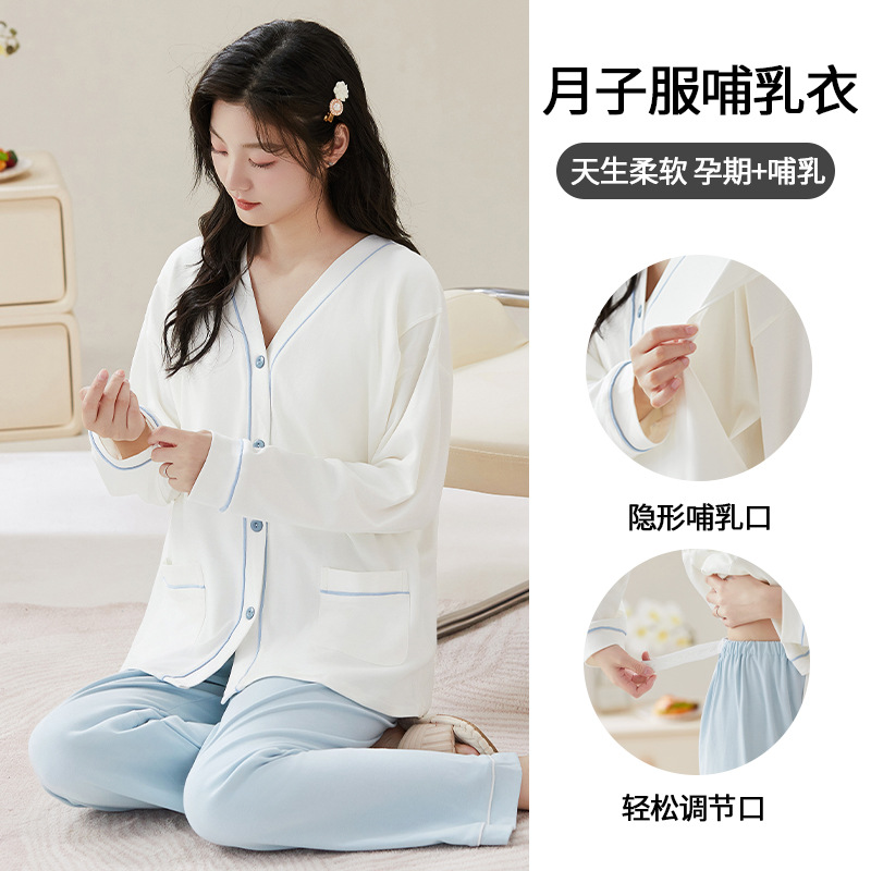 Беременная Пижама Весна и Осень Толстый хлопок Осадка Материнское послеродовое кормление Кормление Пижама Домашняя одежда Набор женский