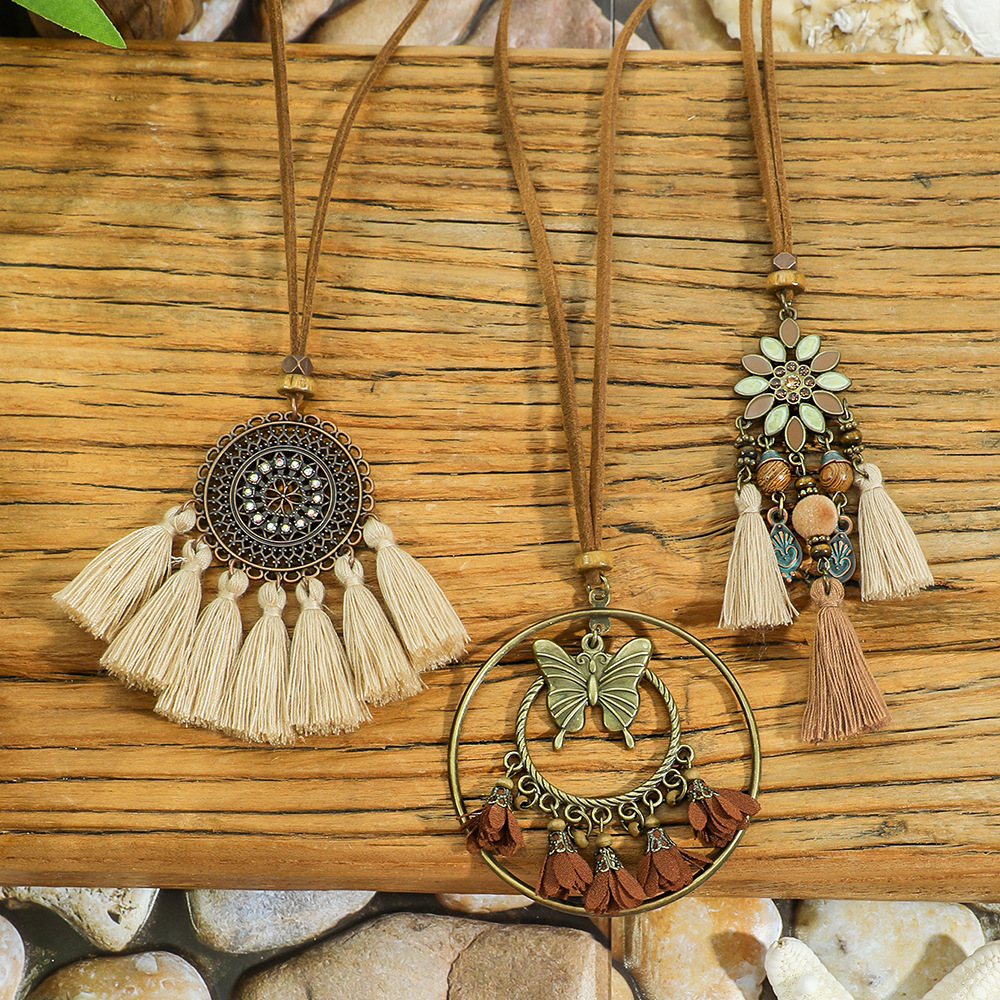 Горячая продажа взрывного богемного ручного ожерелья карри-бахромы бабочки кулон новый китайский винтажный свитер цепи аксессуары