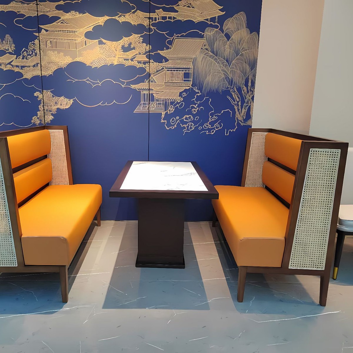 Индивидуальные диваны из ротанга в скандинавском стиле для коммерческих ресторанов и ресторанов с горячим фондю, диваны-банкетки из нержавеющей стали в стиле лёгкой роскоши на заказ.