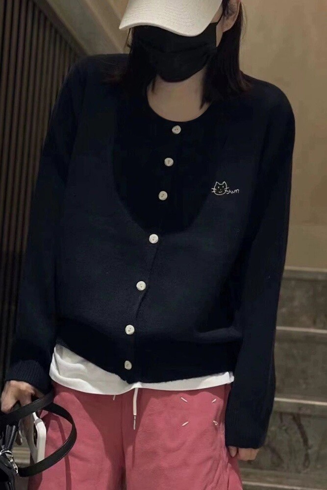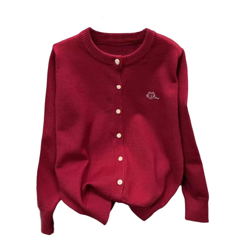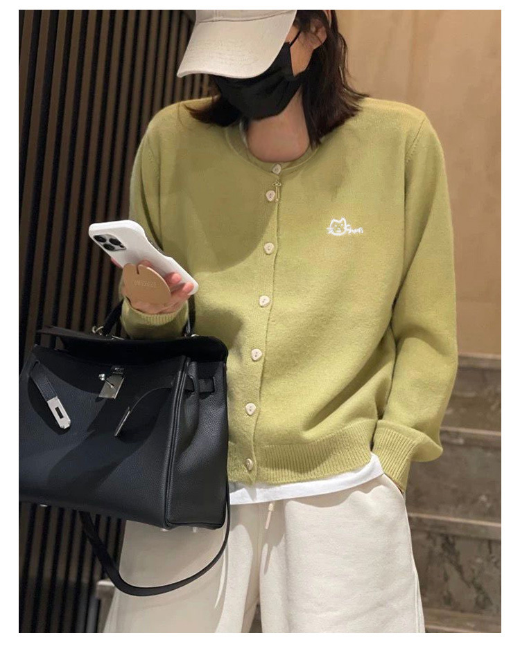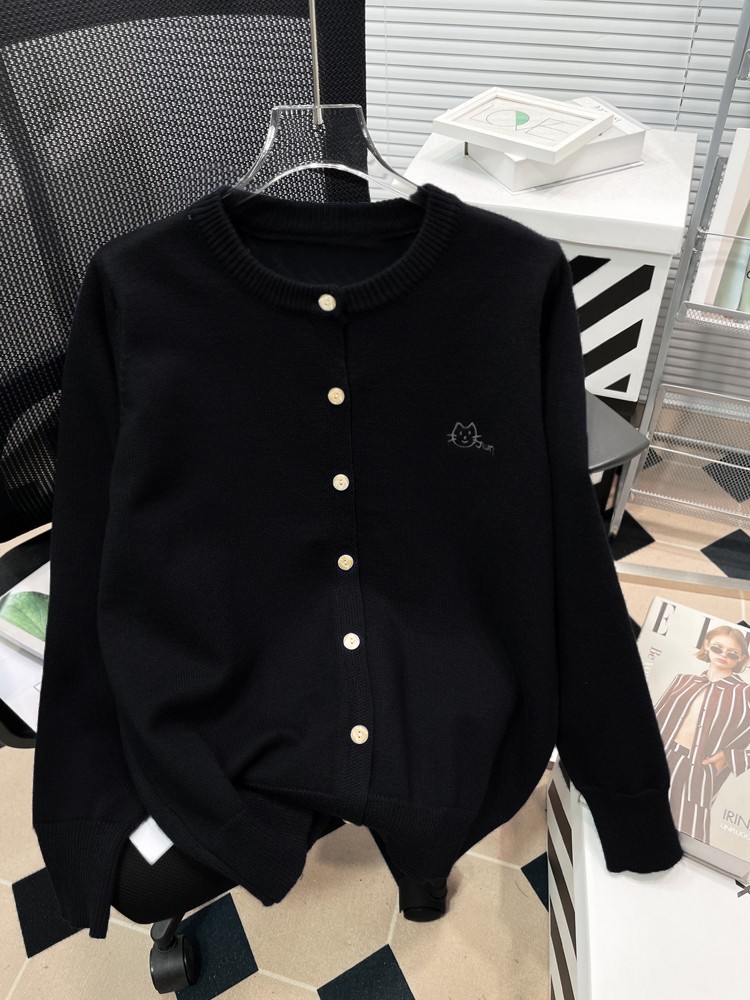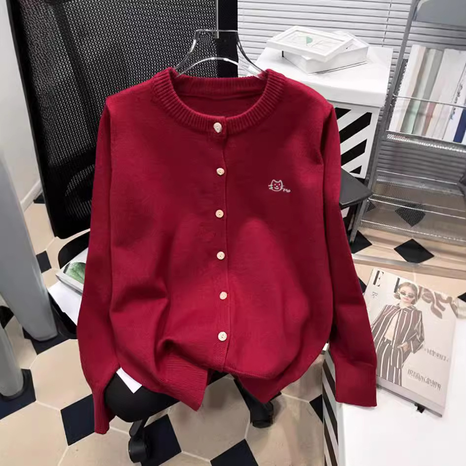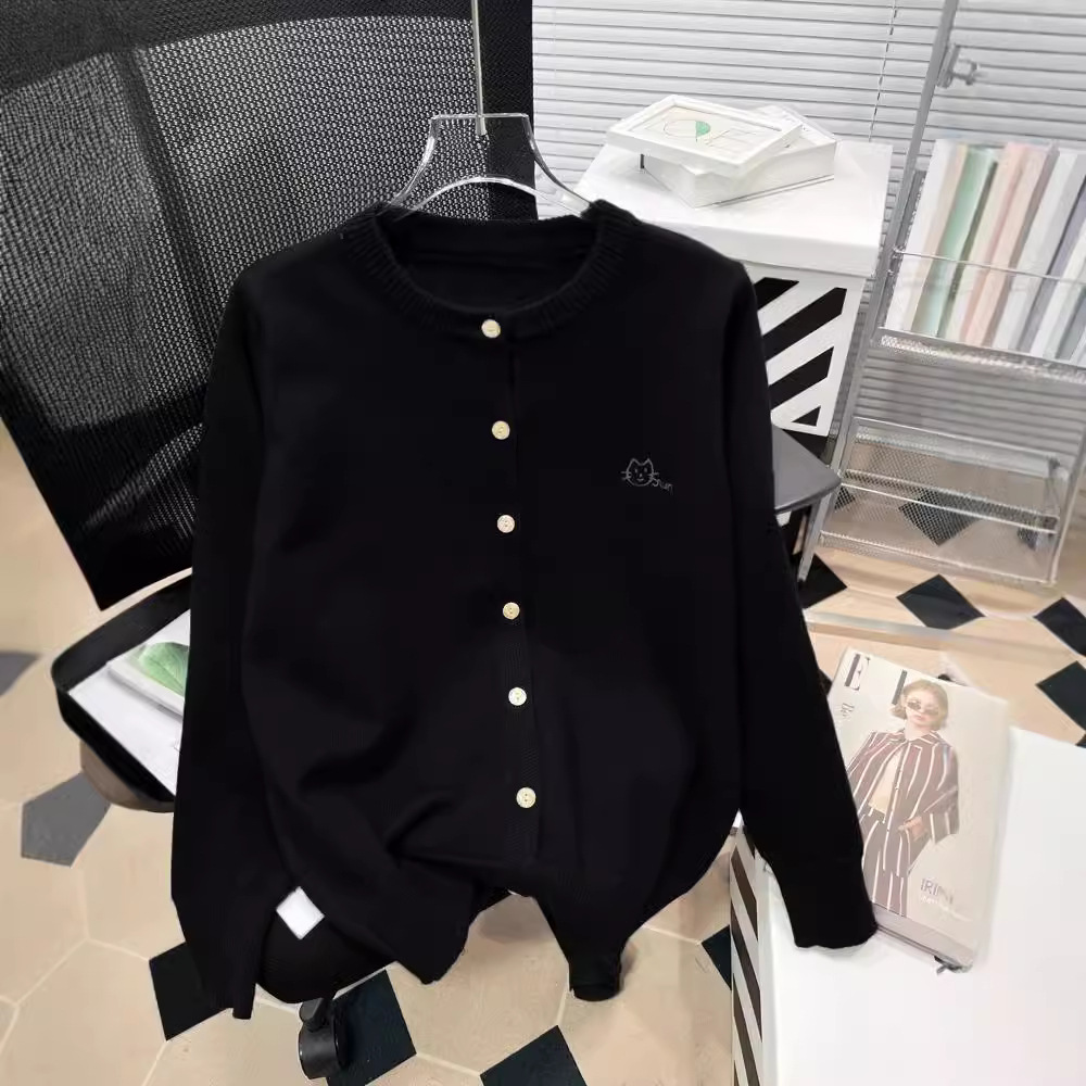 Осень и зима новая женская свободная вышивка сплошной кардиган с круглым вырезом