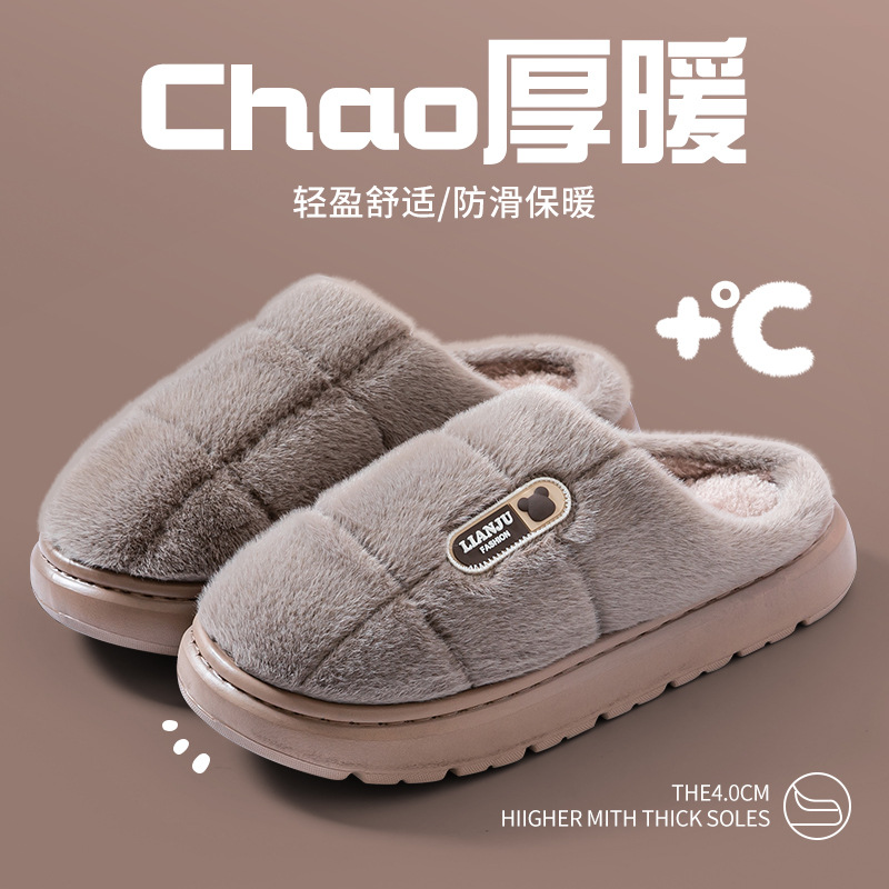 Хлопчатобумажные тапочки мужские специальные большие размеры 2024 зимние новые теплые хлопчатобумажные туфли для дома женские нескользящие и бархатные толстые подошвы