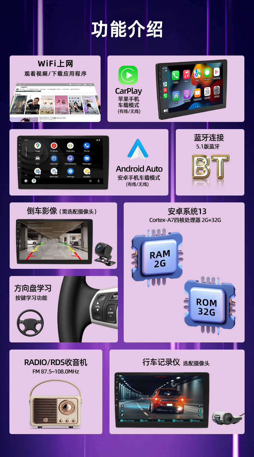 •行车记录仪(摄像头选配),实时路况记录,回放视频清晰让您行车安全有保障