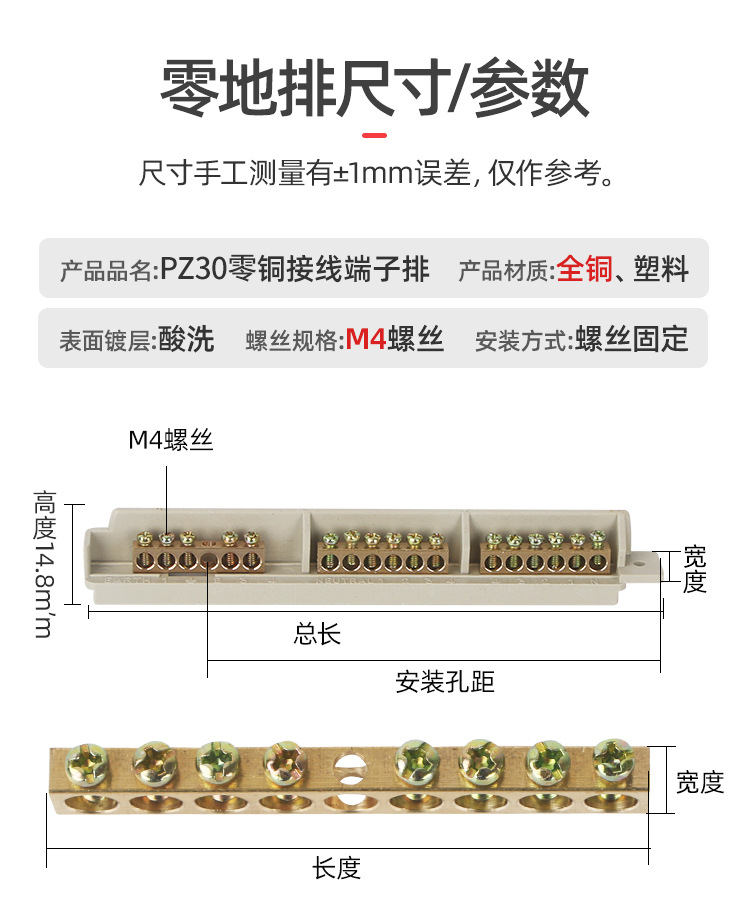 Нулевой распределительный ряд PZ30 обратный ящик заземления с нулевым медным клеммным клеммным соединением заземления