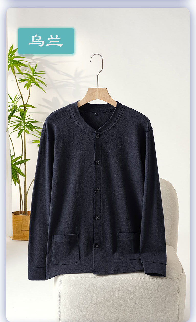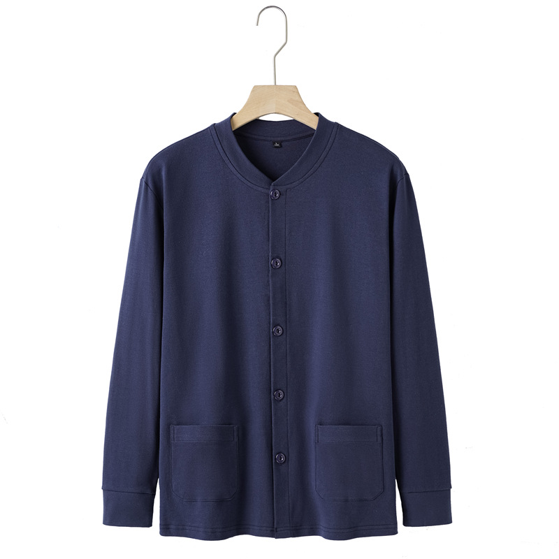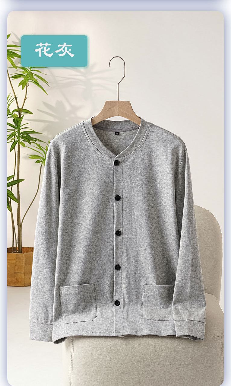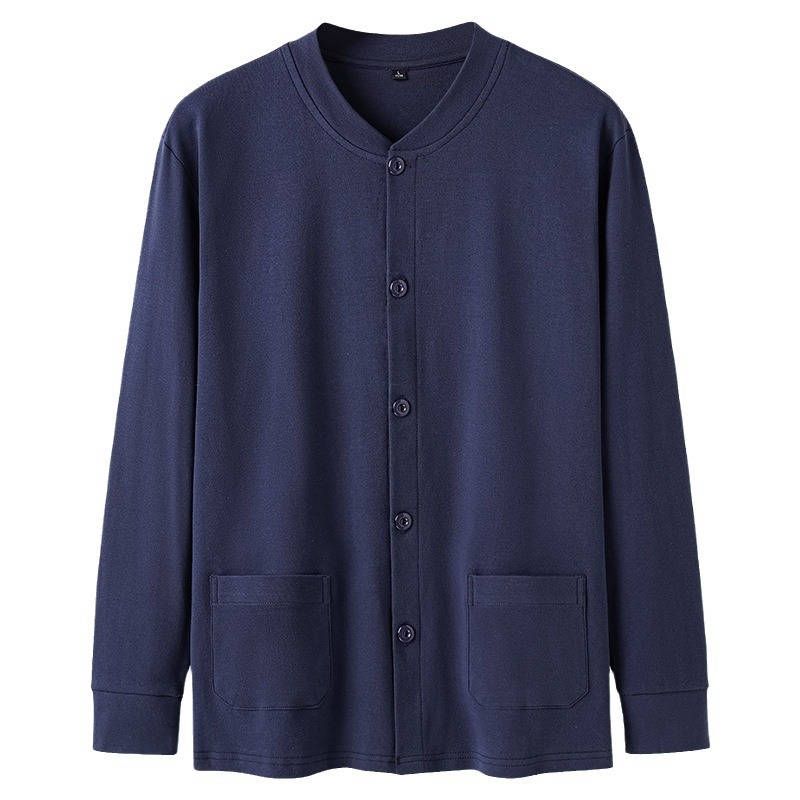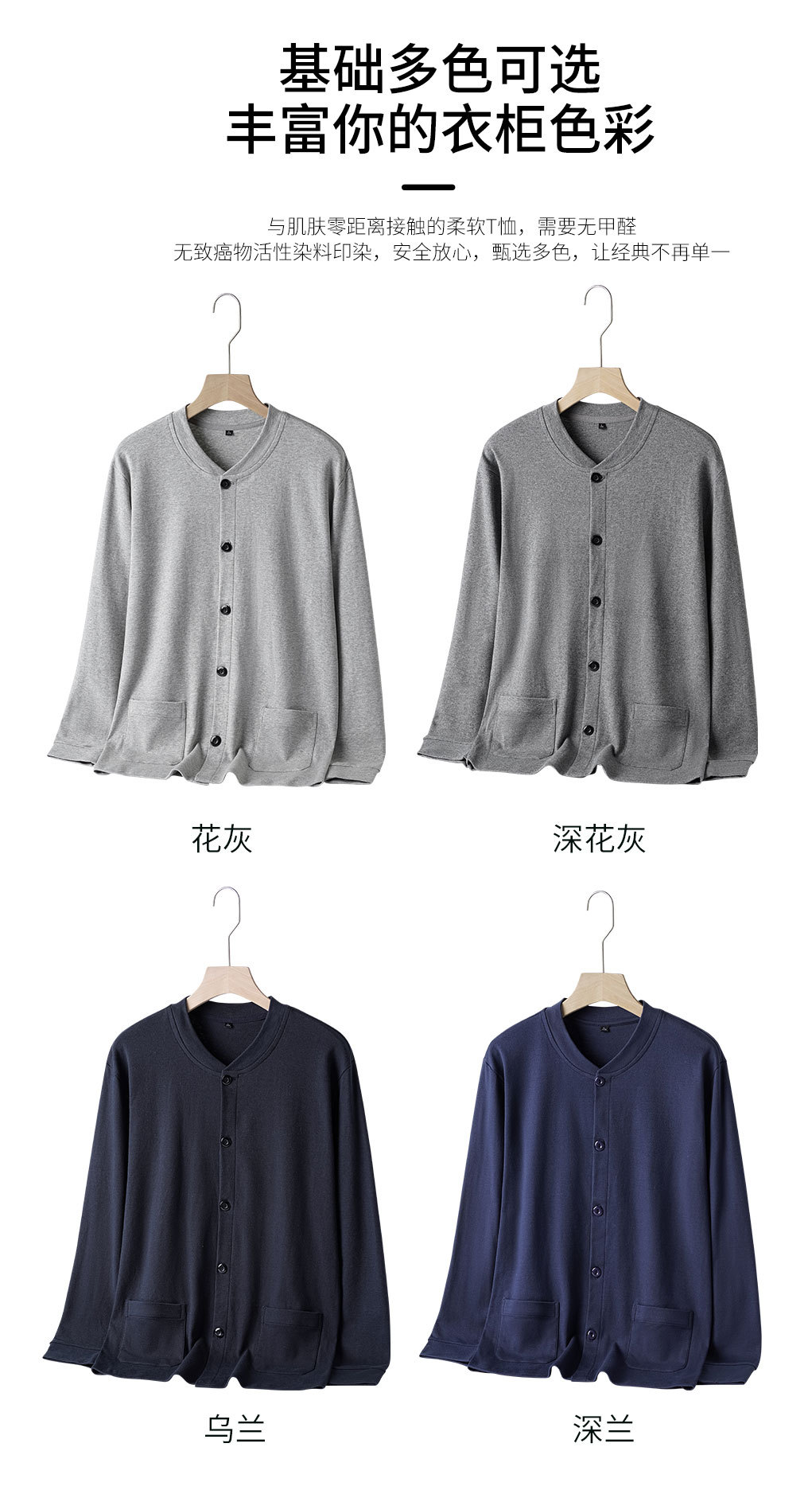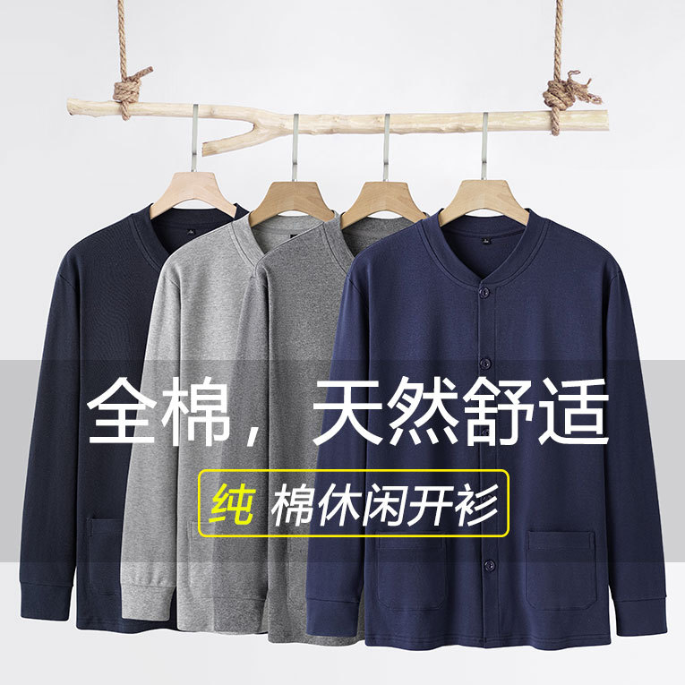 Двубортная свободная повседневная футболка-кардиган из чистого хлопка с длинным рукавом для мужчин среднего и старшего возраста, для пожилых людей