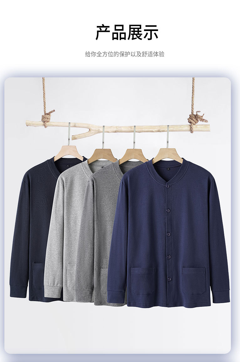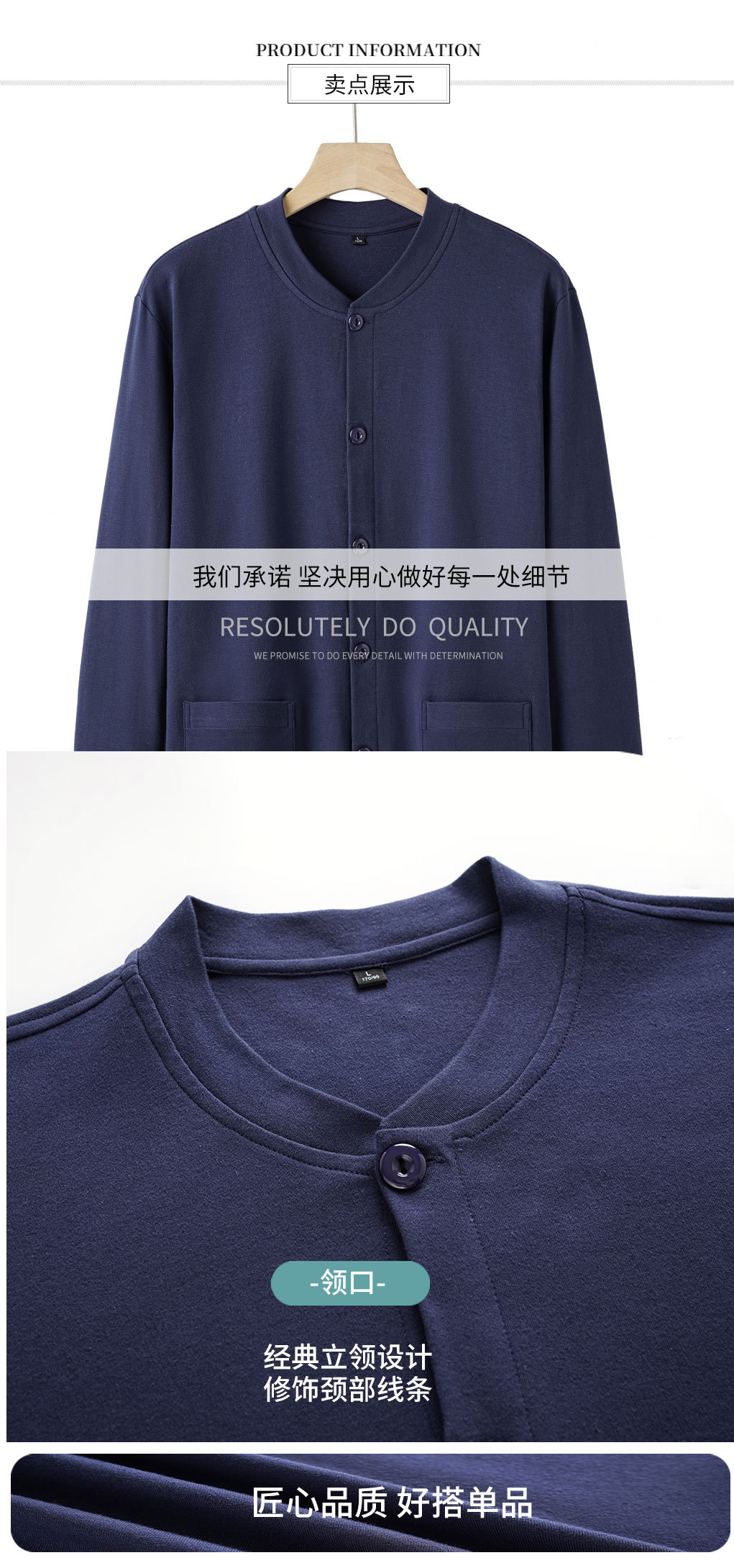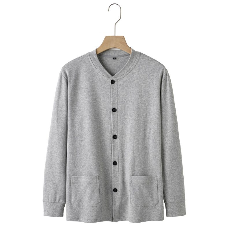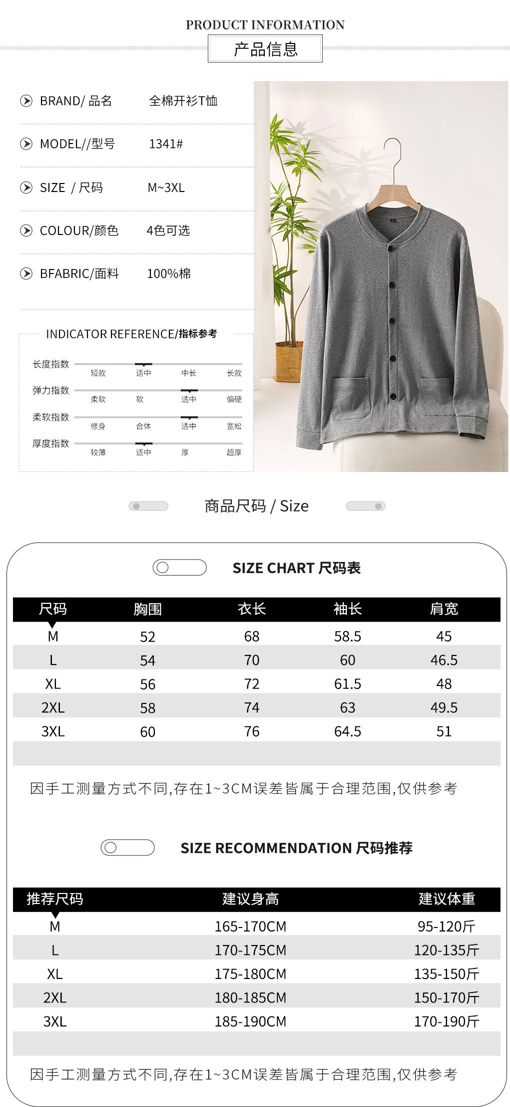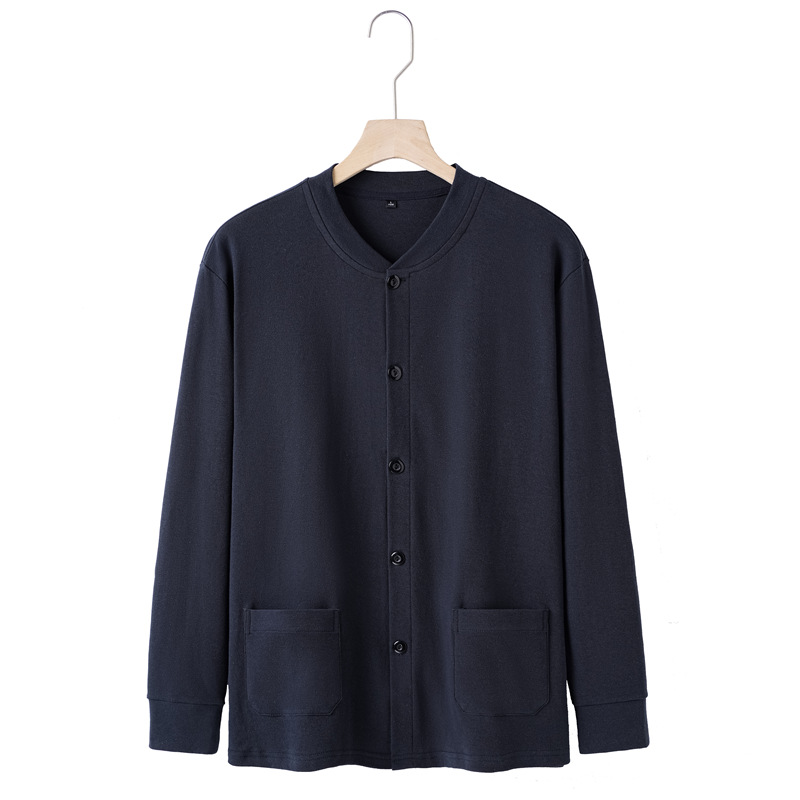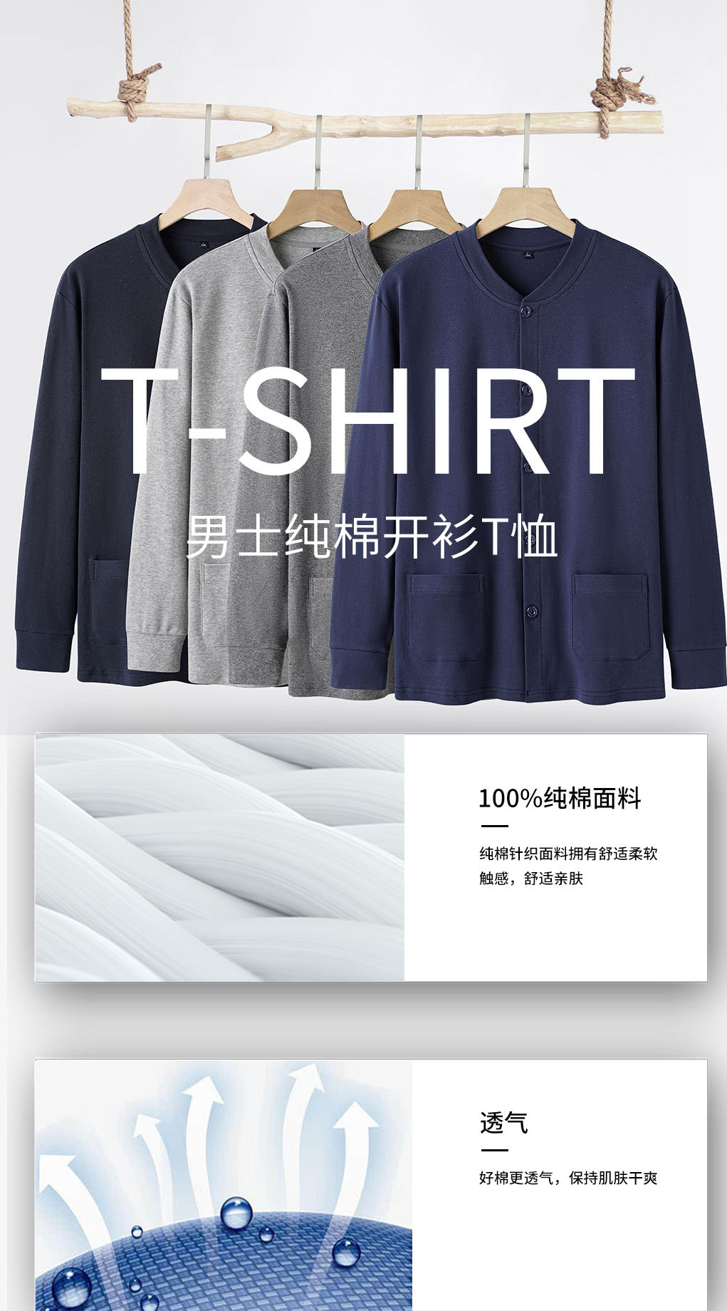 Двубортная свободная повседневная футболка-кардиган из чистого хлопка с длинным рукавом для мужчин среднего и старшего возраста, для пожилых людей