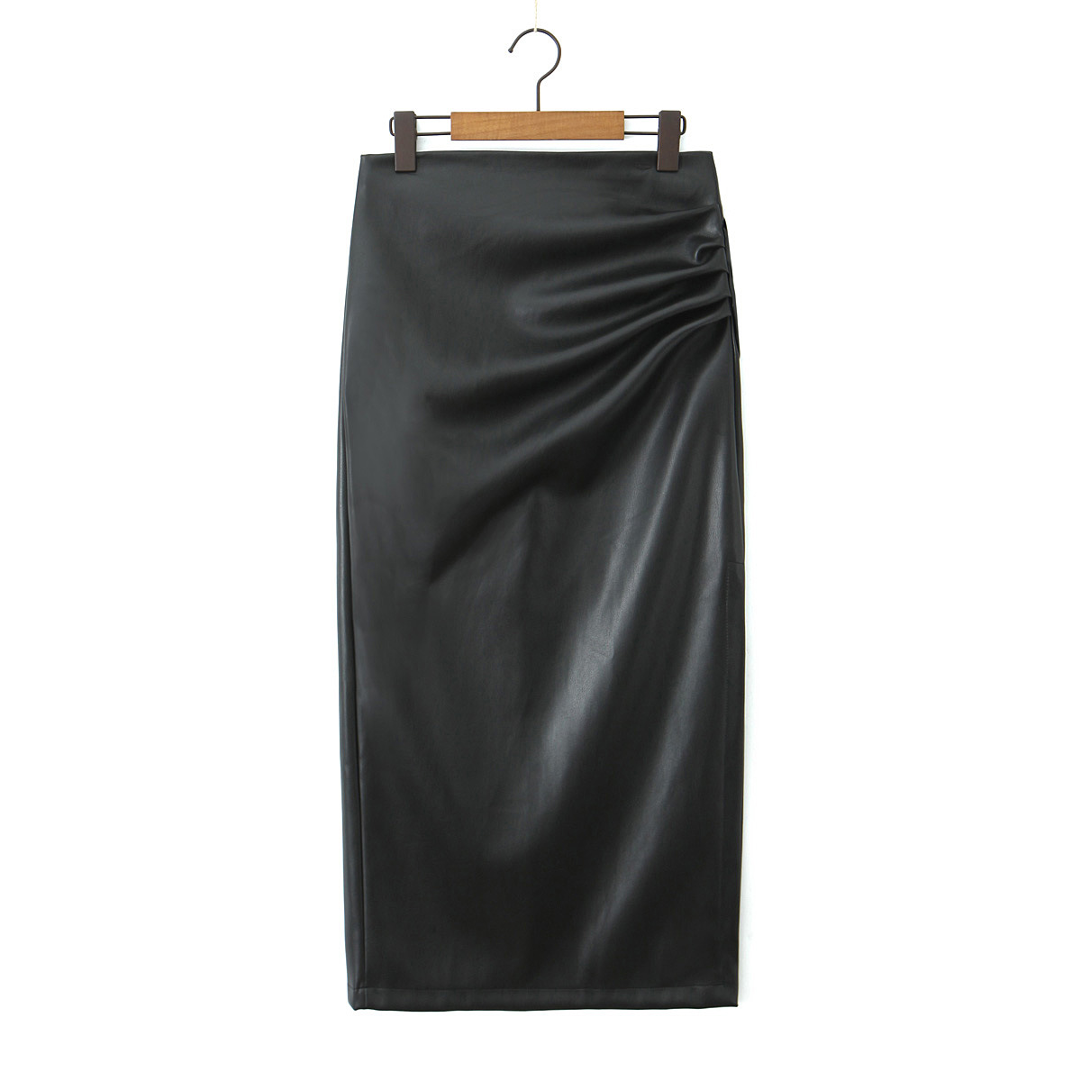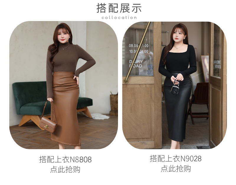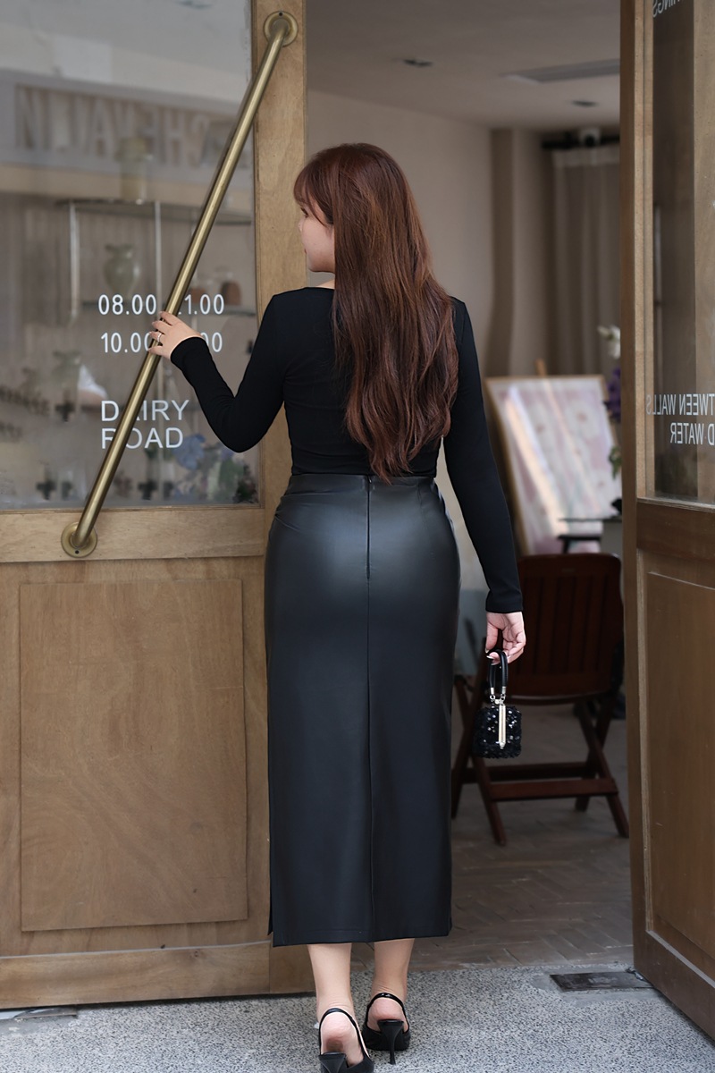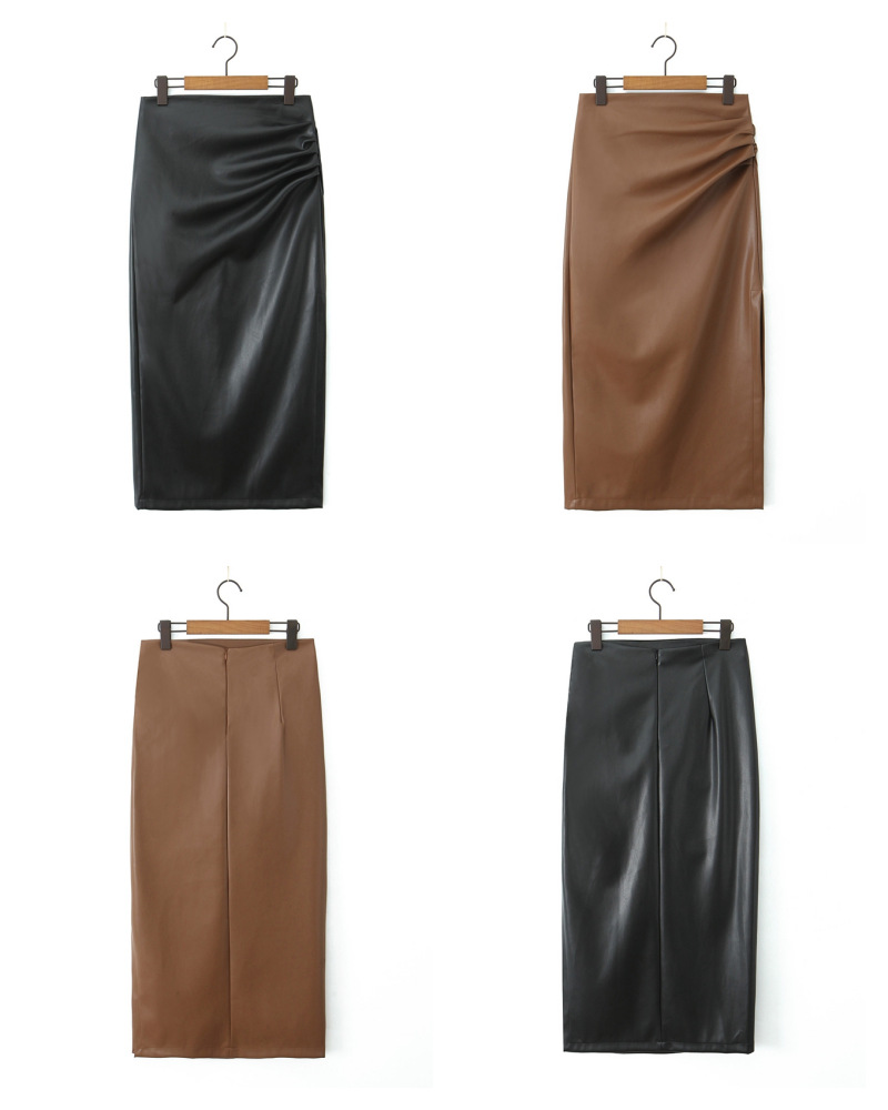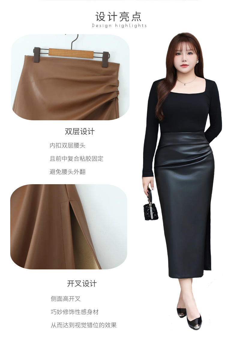 Сплошная тонкая и раздельная средняя длинная кожаная юбка с высокой талией 9017 большой размер сексуальная французская горячая девушка ветер брюхая длинная юбка PU
