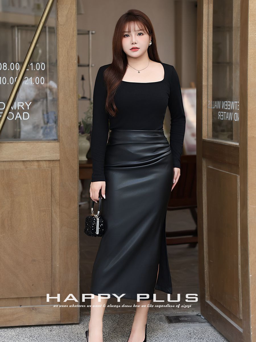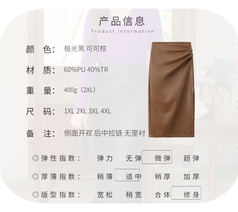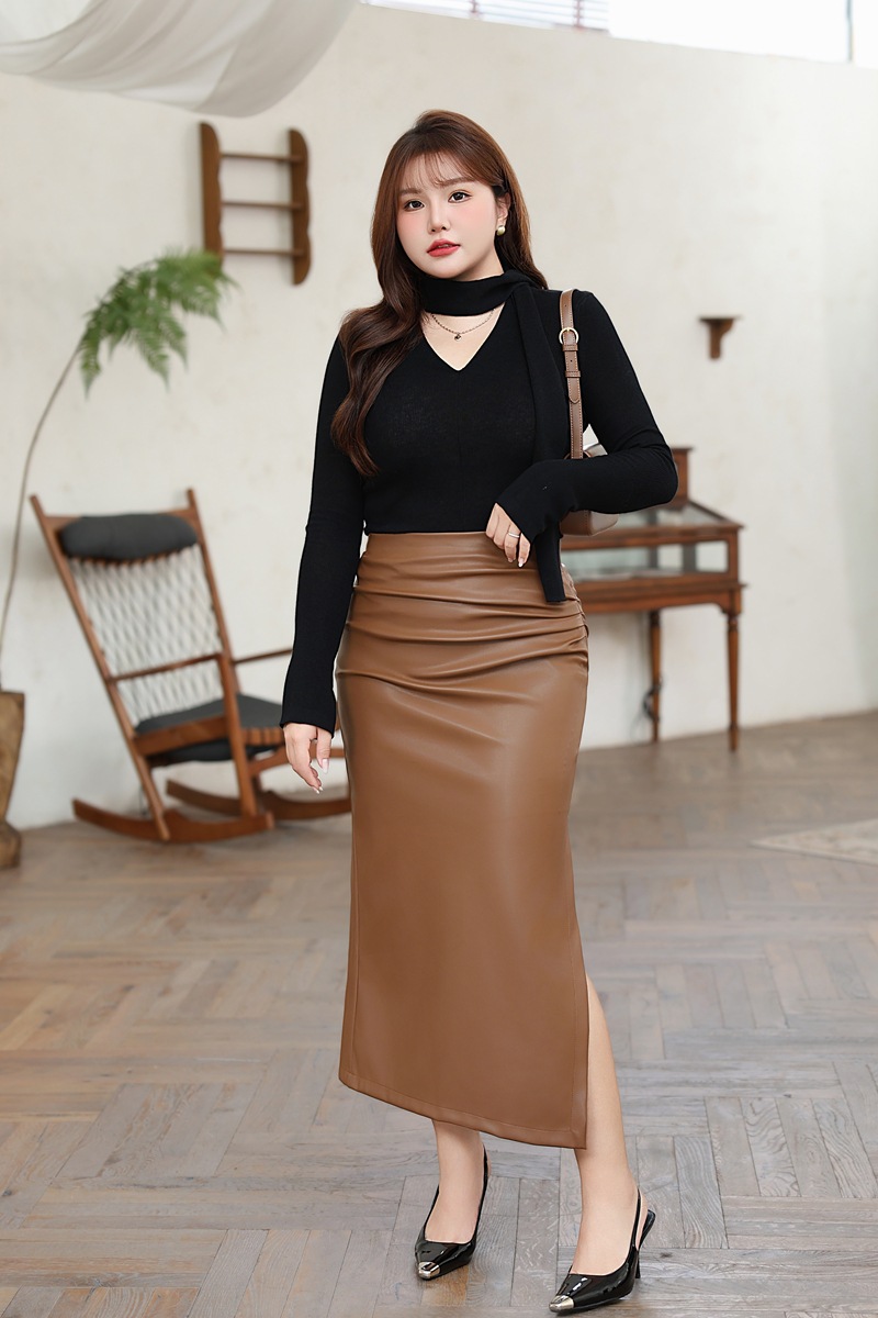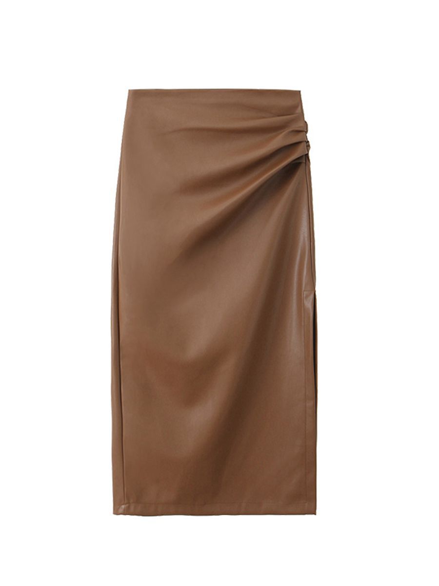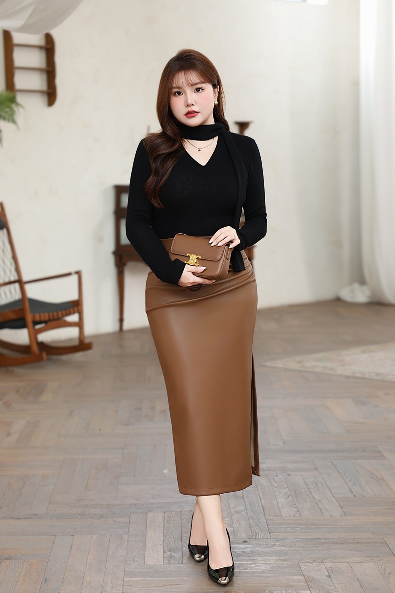 Сплошная тонкая и раздельная средняя длинная кожаная юбка с высокой талией 9017 большой размер сексуальная французская горячая девушка ветер брюхая длинная юбка PU