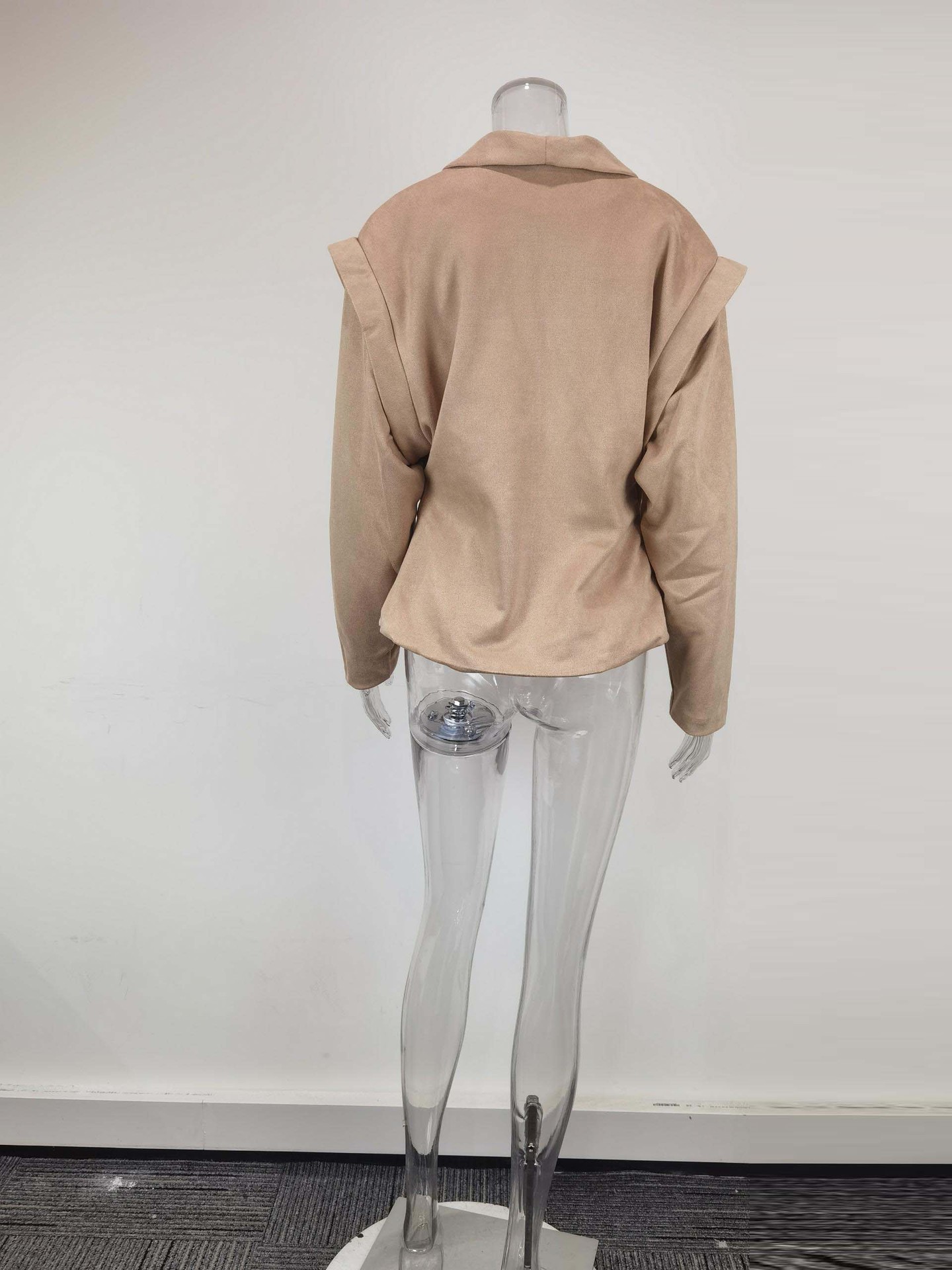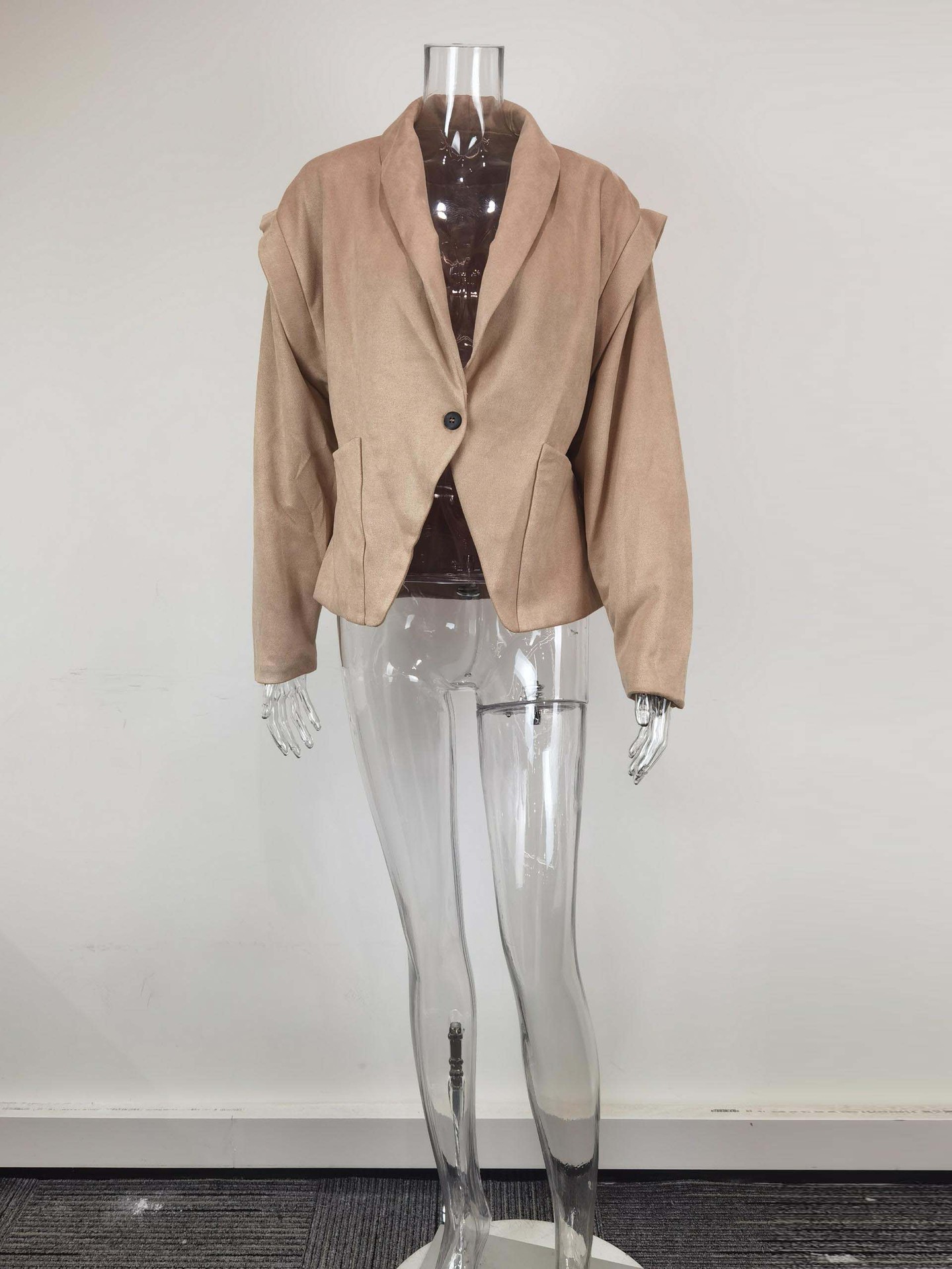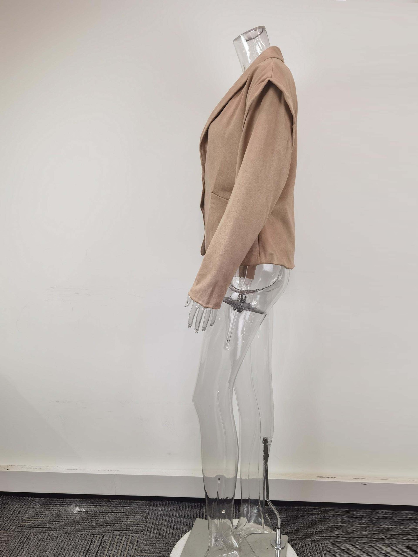 Трансграничная внешняя торговля 2025 новый европейский и американский женский темперамент женский ретро коричневый свободный карман с длинным рукавом пиджак женский