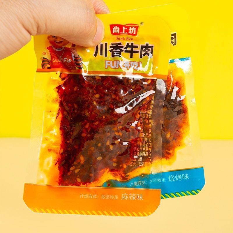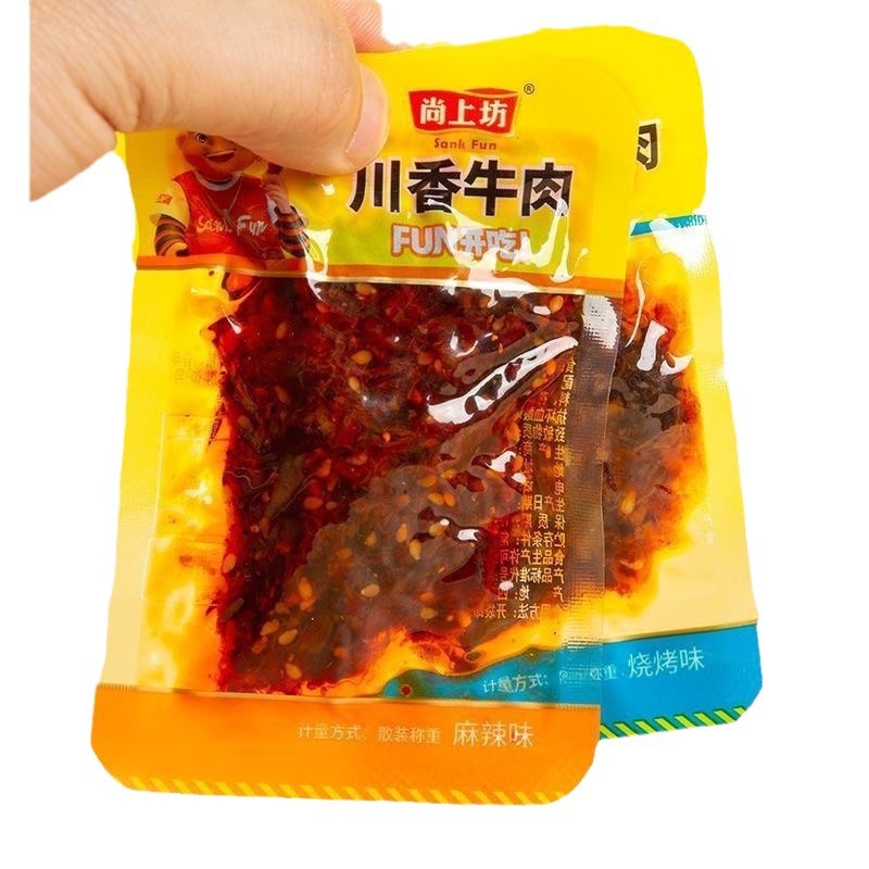 Говяжий сухожилие Шаньшаньфанг, 15 г, в пакетиках, особенность скульптурырской кухни Сычуани, ручной нарезки, в индивидуальной упаковке, острый вкус говядины