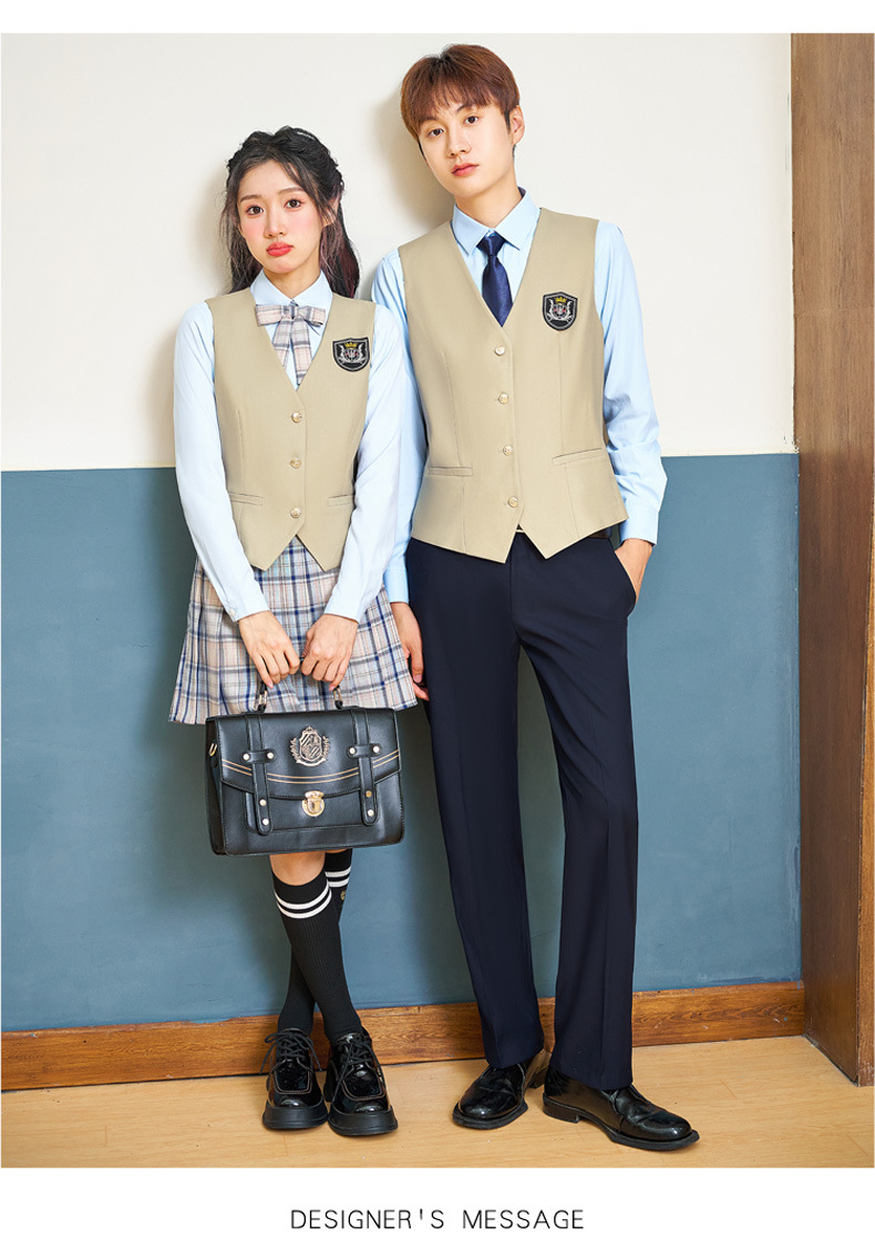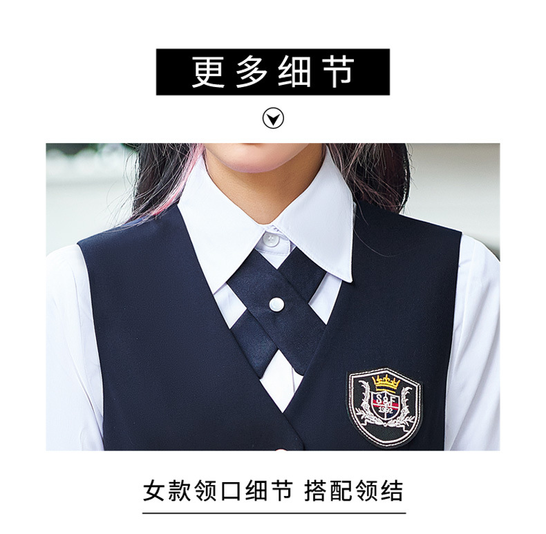 Цельный женский темно-синий жилет; Цельный женский серый жилет; Цельный женский жилет цвета хаки.; Цельный женский темно-зеленый жилет; Комплект из двух предметов для женщин, темно-синий жилет + брюки.; Комплект из двух предметов для женщин, темно-зеленый жилет + плиссированная юбка.; Женский комплект из двух предметов: темно-зеленый жилет + зеленая клетчатая юбка.; Комплект из двух предметов для женщин, темно-синий жилет + синяя юбка с белым краем.; Женский комплект из двух предметов, темно-синий жилет + плиссированная юбка.; Женский комплект из двух предметов: темно-синий жилет + синяя клетчатая юбка.; Комплект из двух предметов для женщин, серый жилет + серая юбка с белым краем.; Комплект из двух предметов для женщин, жилет цвета хаки + абрикосовая клетчатая юбка.; Комплект из трех предметов для женщин: темно-синий жилет + синяя юбка с белым краем + белая рубашка а; Комплект из трех предметов для женщин: темно-синий жилет + плиссированная юбка + белая рубашка а; Комплект из трех предметов для женщин, темно-синий жилет + брюки + синяя рубашка а; Комплект из трех предметов для женщин: серый жилет + серая юбка с белым краем + синяя рубашка b; Комплект из трех предметов для женщин: жилет цвета хаки + абрикосовая клетчатая юбка + синяя рубашка а; Цельный мужской жилет цвета хаки.; Цельный мужской серый жилет; Цельный мужской фиолетовый жилет; Цельный жилет темно-синего цвета; Цельные мужские темно-синие брюки; Цельный предмет мужских серых брюк.; Комплект из двух предметов, мужской темно-синий жилет + брюки; Комплект из двух предметов: мужской серый жилет + брюки; Комплект из двух предметов для мужчин, жилет цвета хаки + брюки темно-синего цвета.; Комплект из двух предметов: мужской фиолетовый жилет + темно-синие брюки; Комплект из трех предметов для мужчин, темно-синий жилет + брюки + белая рубашка; Костюм-тройка мужской, серый жилет + брюки + белая рубашка.; Костюм-тройка мужской, серый жилет + брюки + синяя рубашка.; Комплект из трех предметов для мужчин: жилет цвета хаки + темно-синие брюки + синяя рубашка.; Комплект из трех предметов для мужчин, фиолетовый жилет + темно-синие брюки + белая рубашка