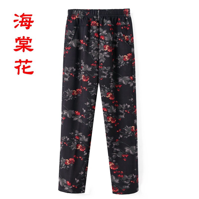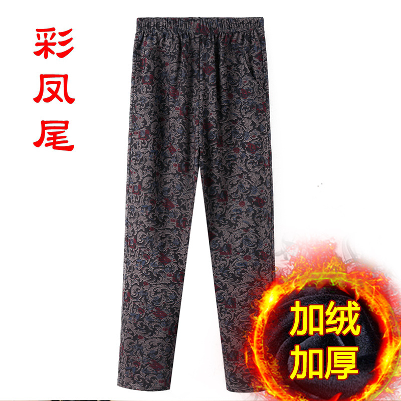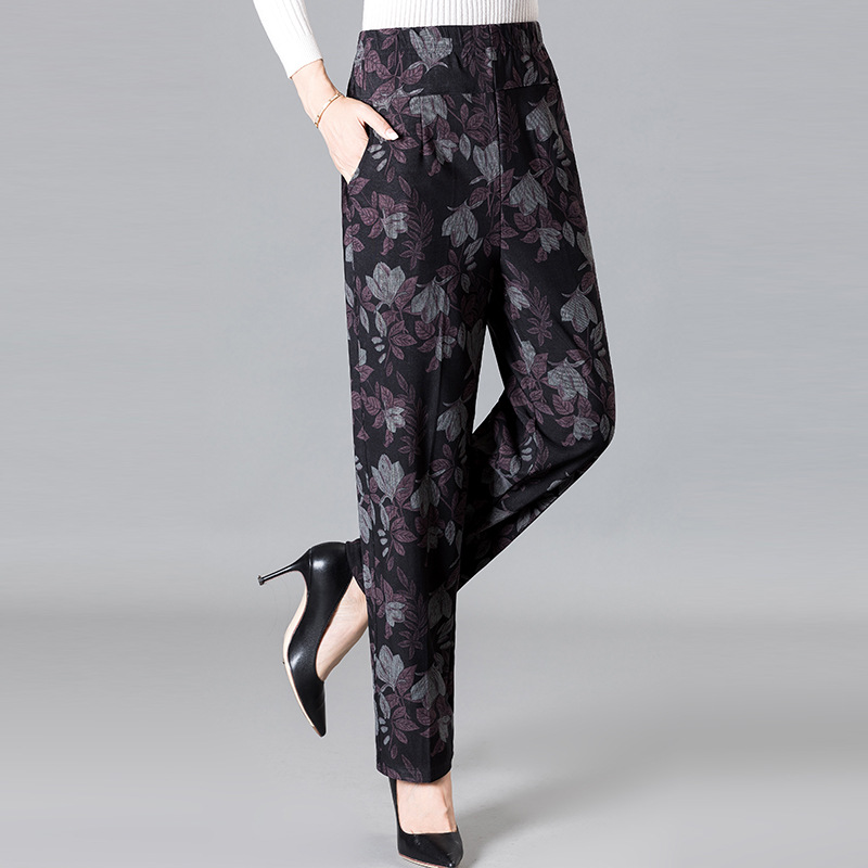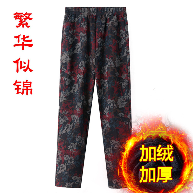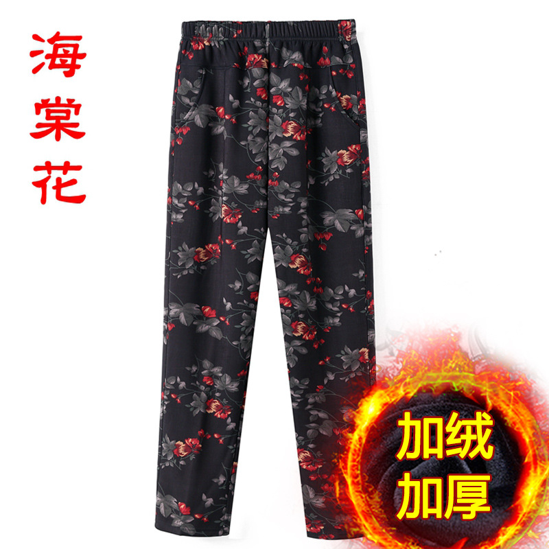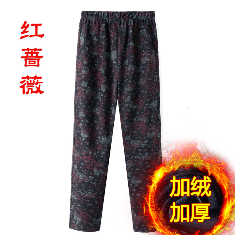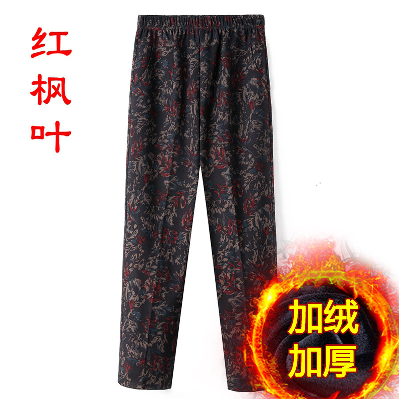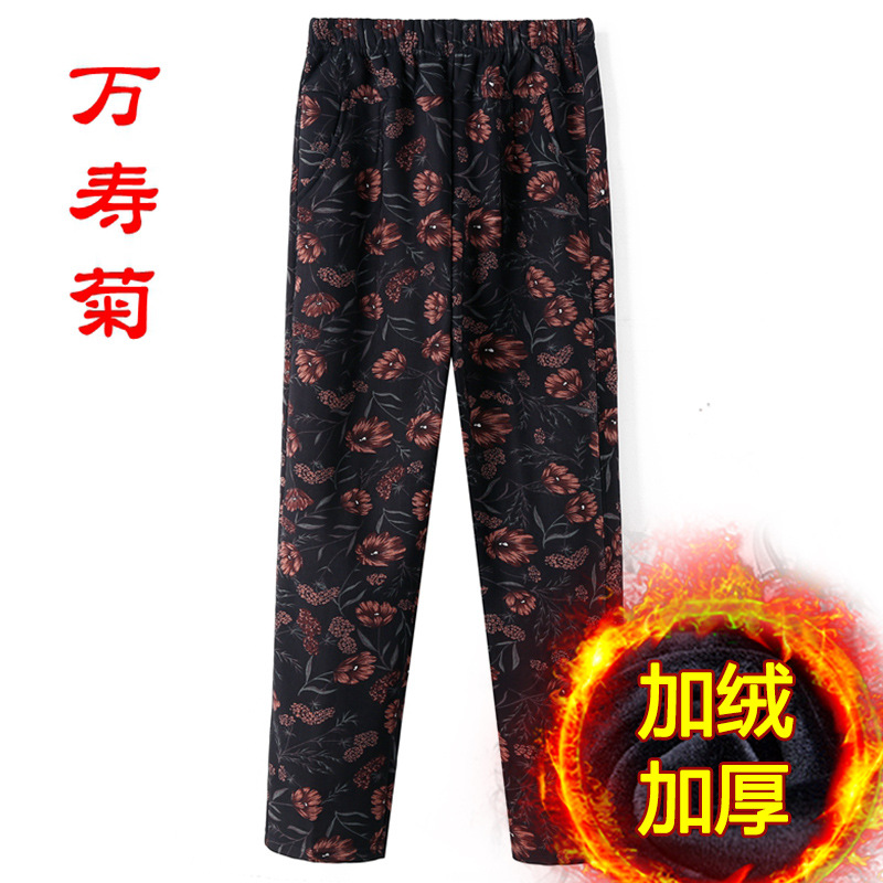 Женские брюки среднего и пожилого возраста Весна и осень Зимние брюки плюс бархатные свободные прямые мамы