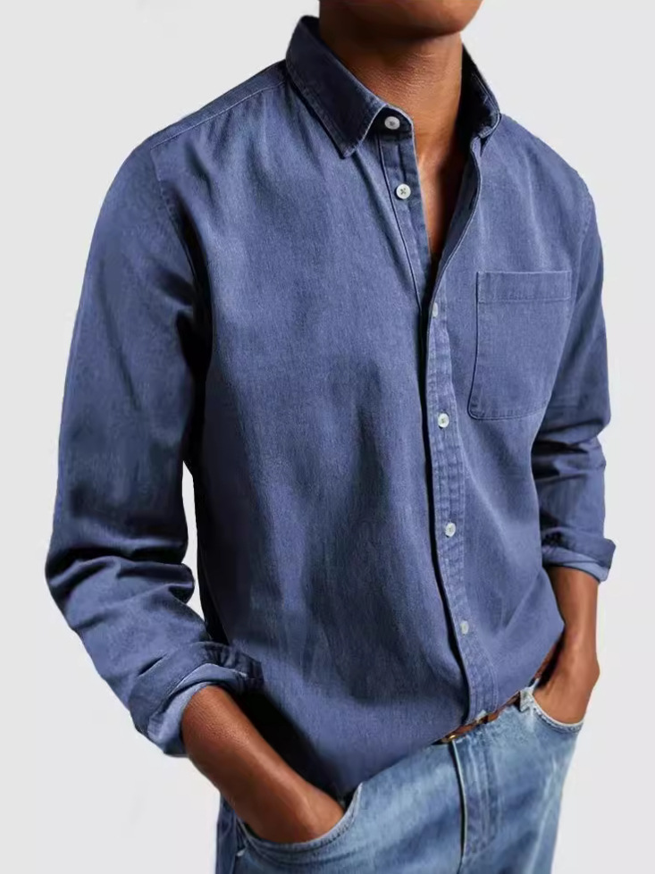 2024 Трансграничная Amazon внешняя торговля Европа и США мужская новая рубашка с отворотом сплошной цвет мужская ретро рубашка с длинными рукавами
