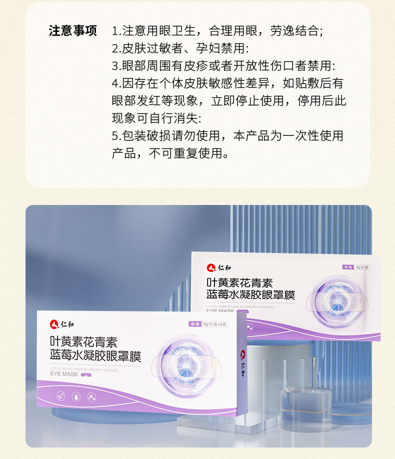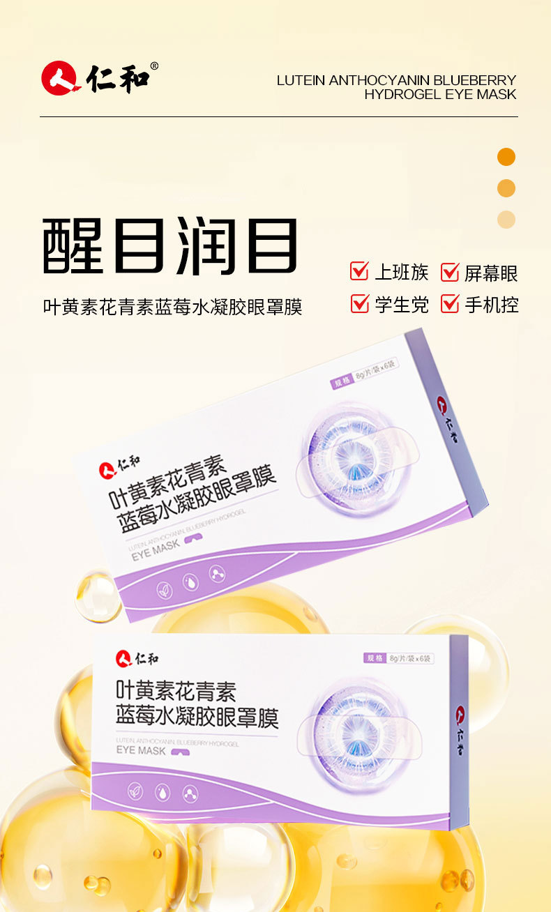 【Дропшиппинг】Гидрогелевая маска для глаз Renhe с лютеином, антоцианами и экстрактом черники