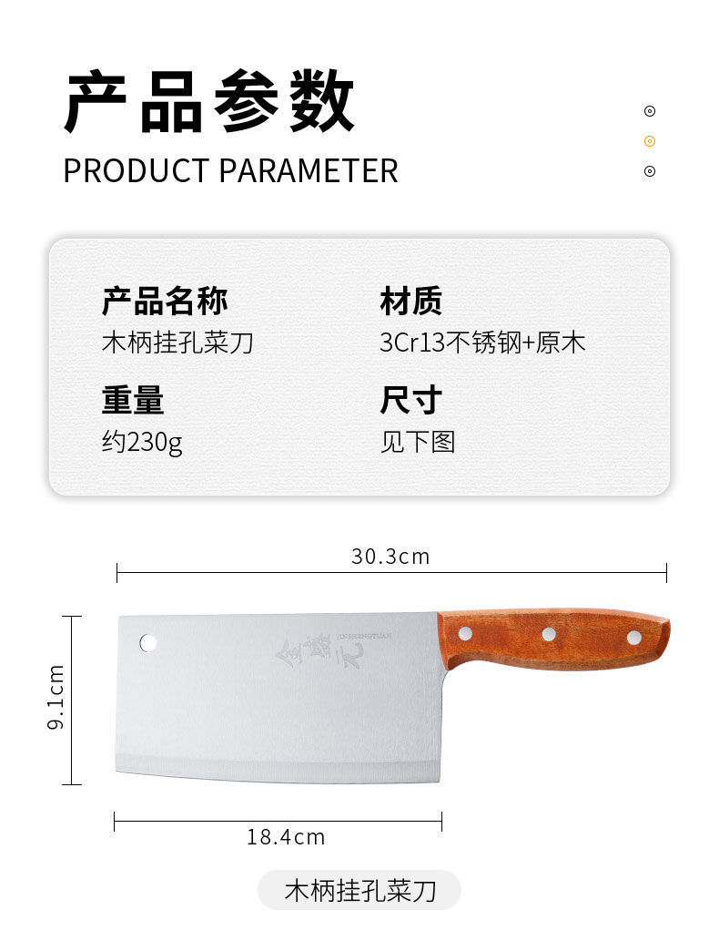 Кухонный нож с отверстиями для подвешивания деревянной ручки