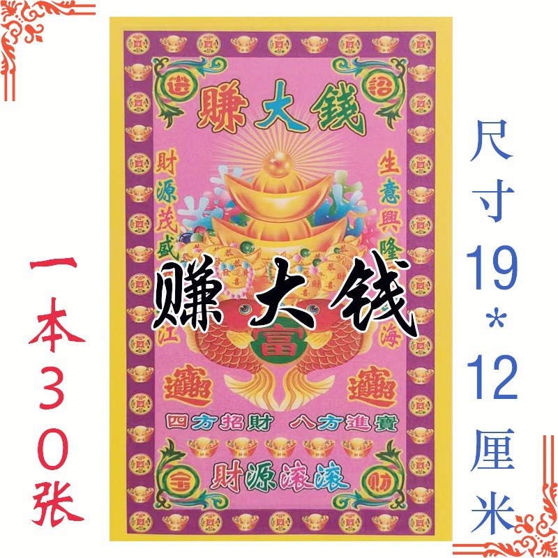Маленький полнолуние, золотая земля, золотая дорога удачи, процветающее бизнес-процветание, золотая бумага, сжигаемая бумажная книга, 30 листов, оптовая доставка.