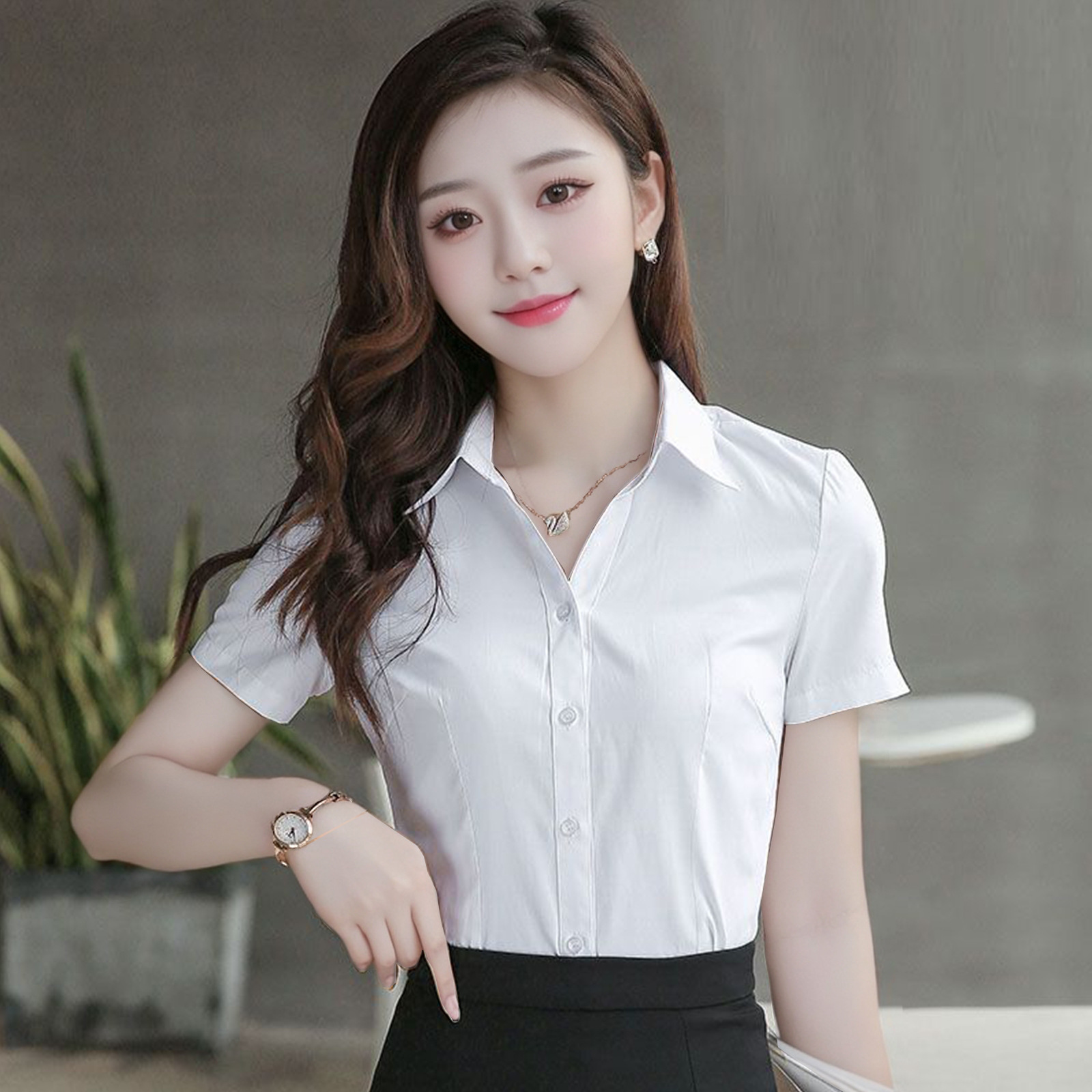 Женская рубашка с V-образным вырезом в корейском стиле, профессиональная, повседневная, больших размеров, с длинным рукавом, белая, для офиса и работы.