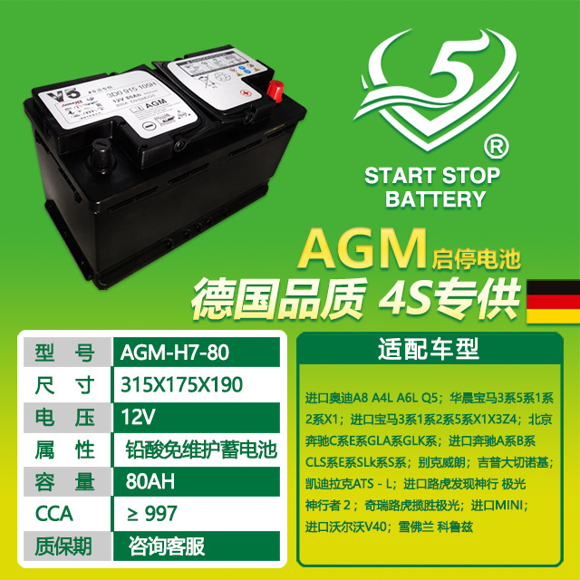 V5 бесремонтный свинцово-кислотный запуск автомобильного аккумулятора AGM 12V80AH заводской автоаккумулятор оптовая продажа