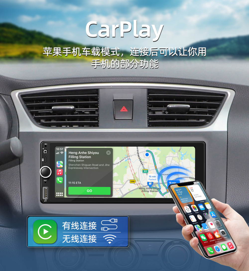 Автомобильный MP5-плеер Cross-border 6.86inch с беспроводным CarPlay, изображением заднего вида высокой четкости и одноцилиндровым автомобильным радиоприемником.