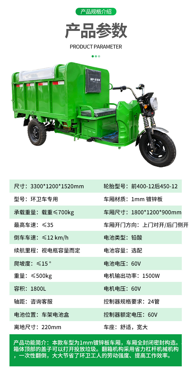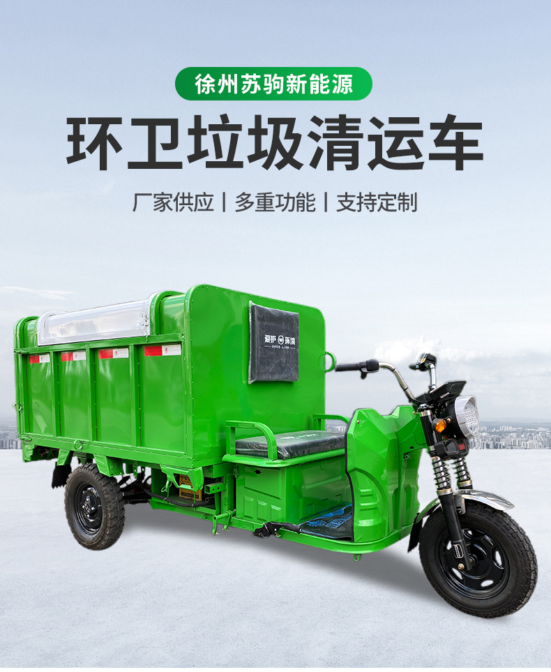 Электрический трехколесный велосипед, муниципальный санитарный автомобиль для уборки, общественное имущество, саморазгружающийся мусорный герметичный автомобиль для удаления мусора, 1800 литров