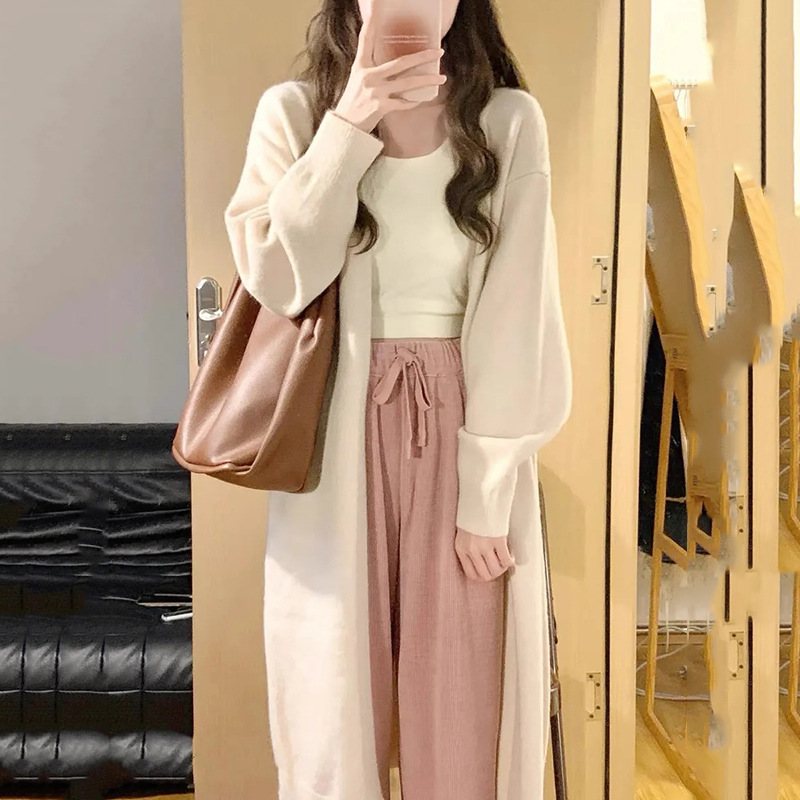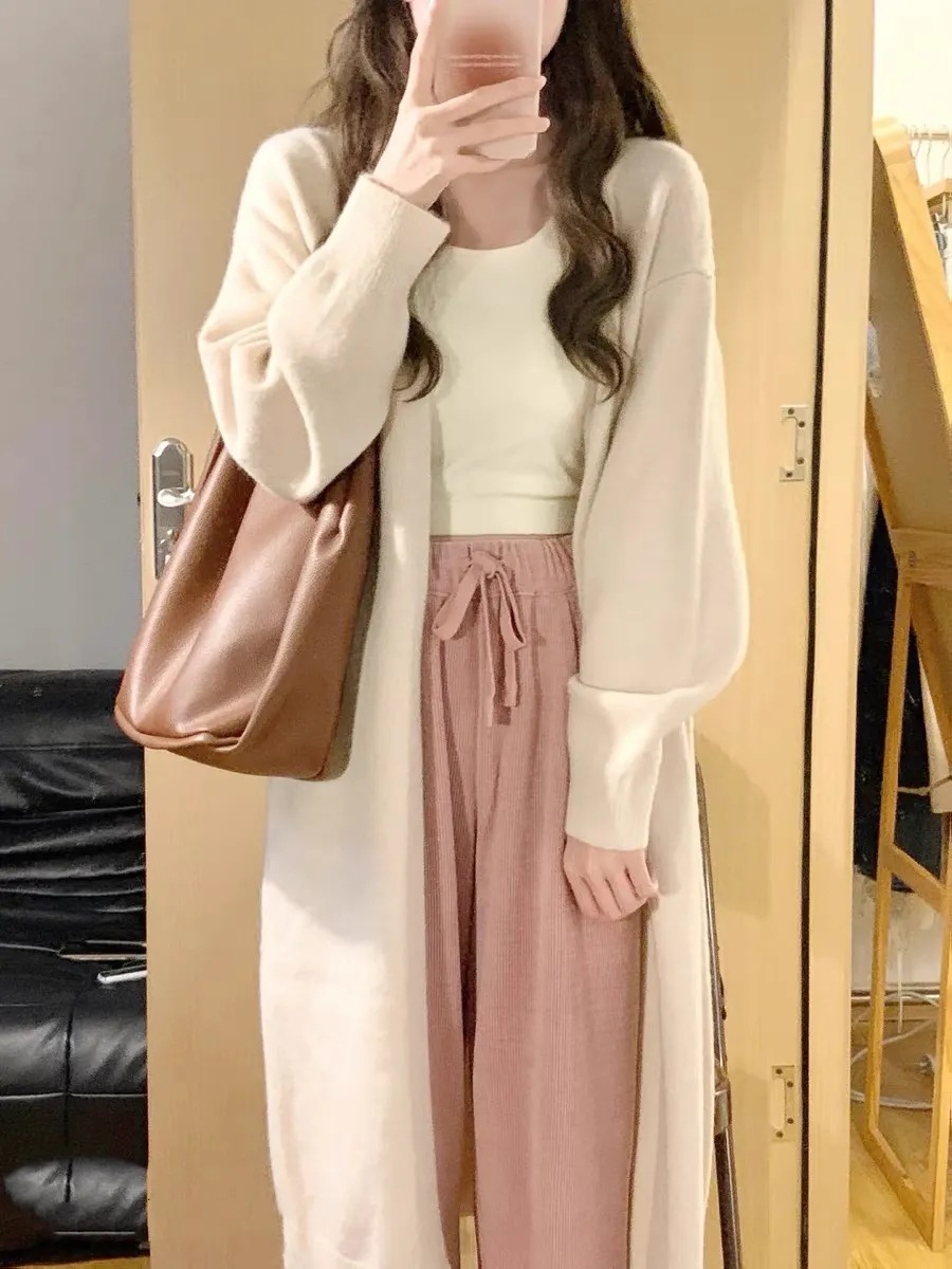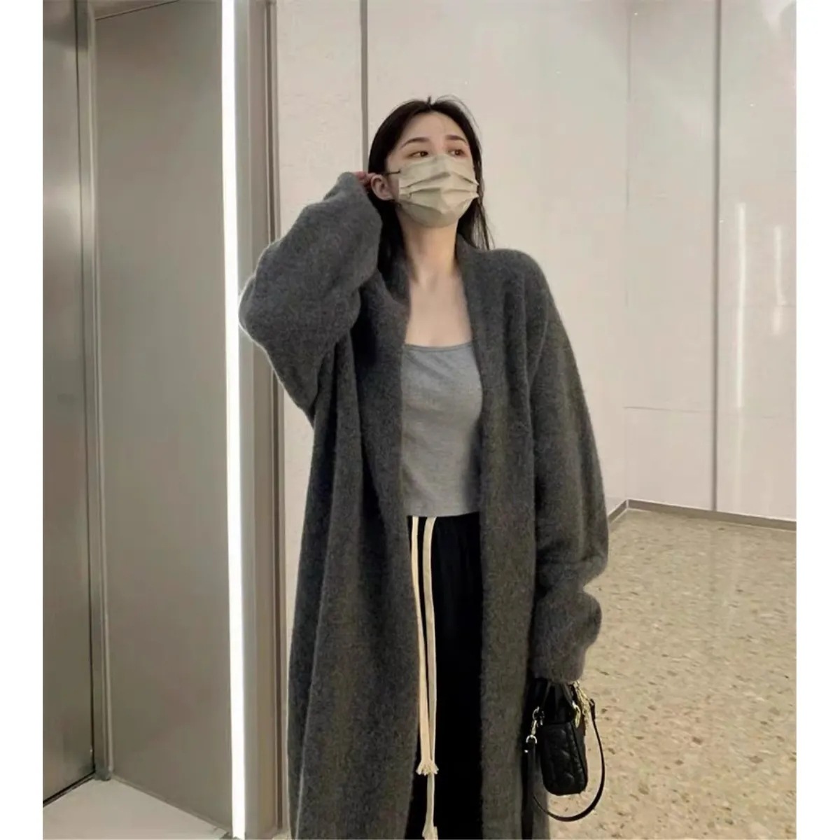 Ленивый ветер ретро среднего и длинного свитера кардиган женский осенний и зимний новый нишский дизайн