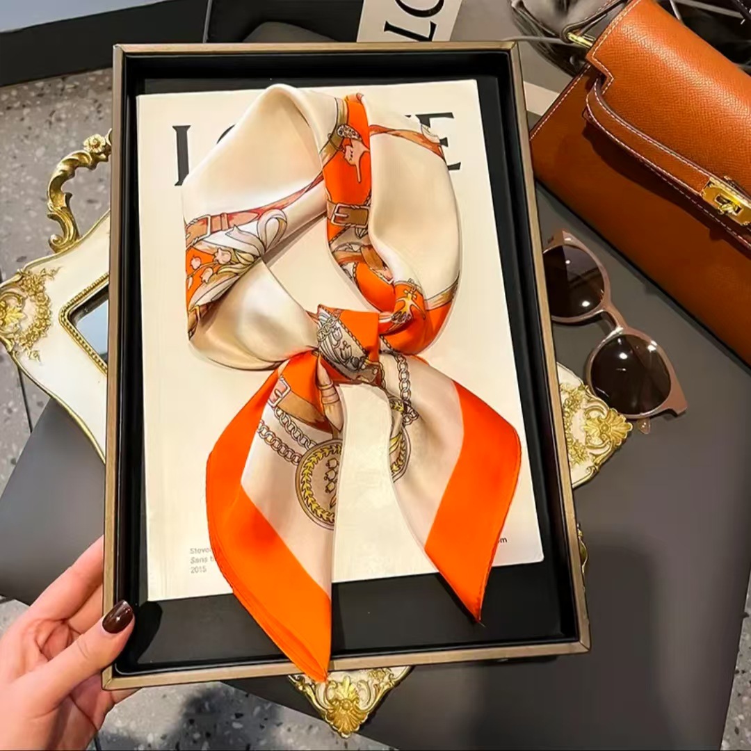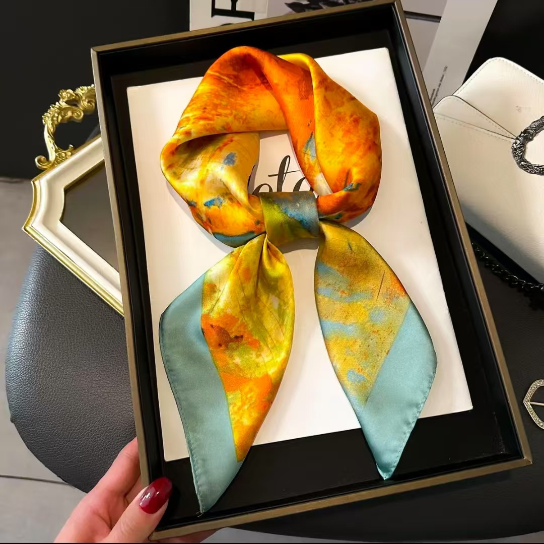 Новый шелковый шарф женская мода дикий смысл 70 квадратных шарфов Корейская версия шейного шарфа Весенний и Осенний ретро шарф сумка