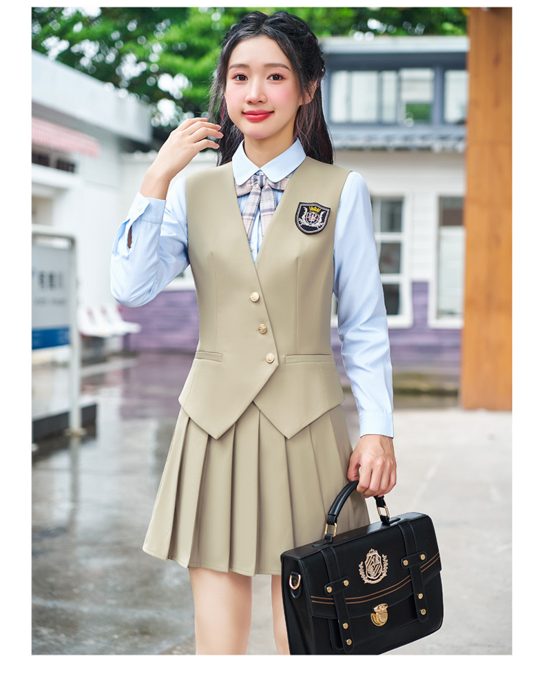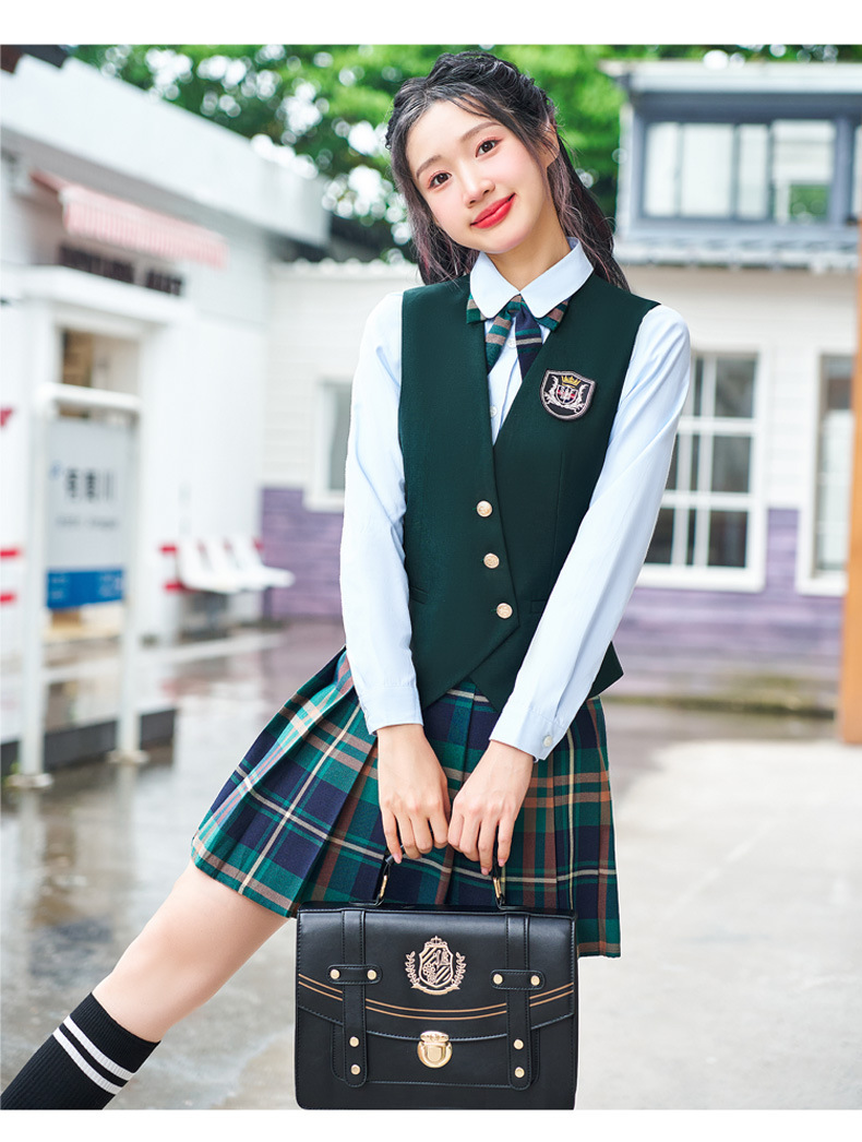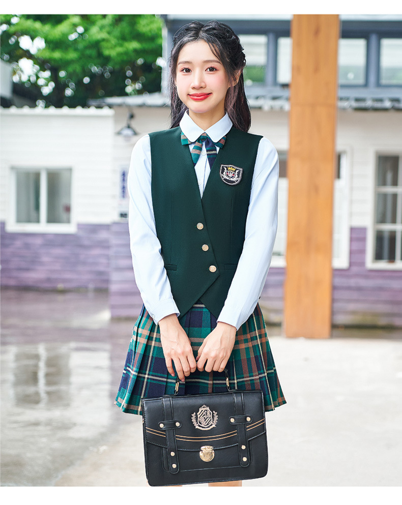 Одиночный серый жилет; Одинарный жилет цвета хаки; Цельный темно-зеленый жилет; Цельный жилет темно-синего цвета; Цельная женская синяя рубашка; Одинарная женская белая рубашка; Женская одинарная юбка (молый стиль); Цельная женская темно-синяя плиссированная юбка; Цельная женская серая плиссированная юбка; Цельная женская плиссированная юбка цвета хаки.; Комплект из двух предметов: темно-синий жилет + синяя юбка с белым краем.; Комплект из двух предметов: темно-синий жилет + плиссированная юбка.; Комплект из двух частей серая жилетка + серая юбка с белым краем; Комплект из двух частей серая жилетка + плиссированная юбка.; Комплект из двух предметов, темно-зеленый жилет + плиссированная юбка.; Комплект из двух предметов: жилет цвета хаки + плиссированная юбка.; Комплект из двух предметов: темно-зеленый жилет + зеленая клетчатая юбка.; Комплект из трех предметов: темно-синий жилет + синяя юбка с белым краем + белая рубашка.; Комплект из трех предметов: темно-синий жилет + синяя юбка с белым краем + синяя рубашка; Комплект из трех предметов: темно-синий жилет + плиссированная юбка + белая рубашка.; Комплект из трех предметов серая жилетка + плиссированная юбка + белая рубашка; Комплект из трех предметов: жилет цвета хаки + плиссированная юбка + белая рубашка.; Комплект из трех предметов: темно-зеленый жилет + плиссированная юбка + белая рубашка.; Комплект из трех предметов: темно-зеленый жилет + зеленая клетчатая юбка + белая рубашка.