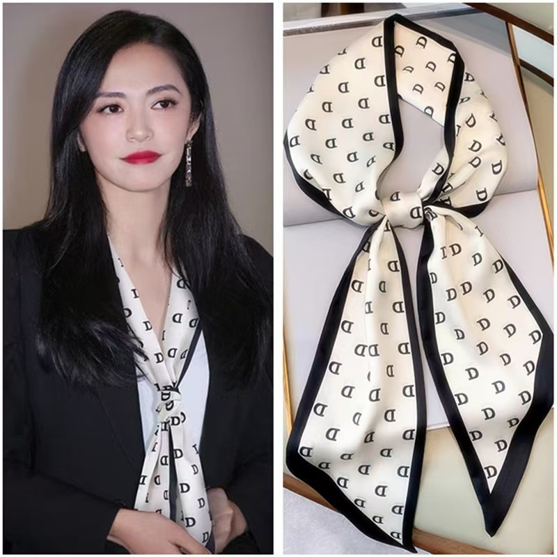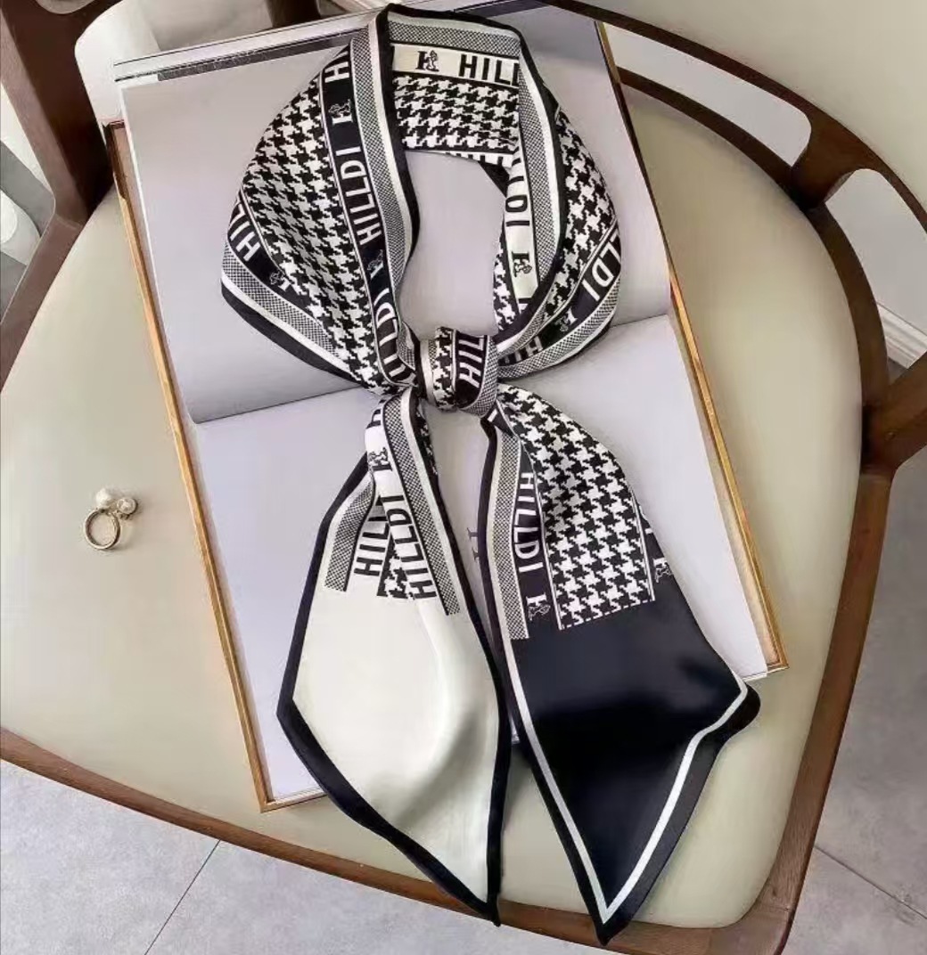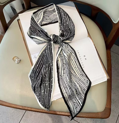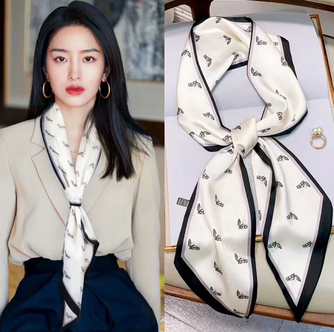 Тонкий узкий длинный шелковый шарф весной и осенью дикий женский 2023 тысячи птиц профессиональный декоративный маленький шарф
