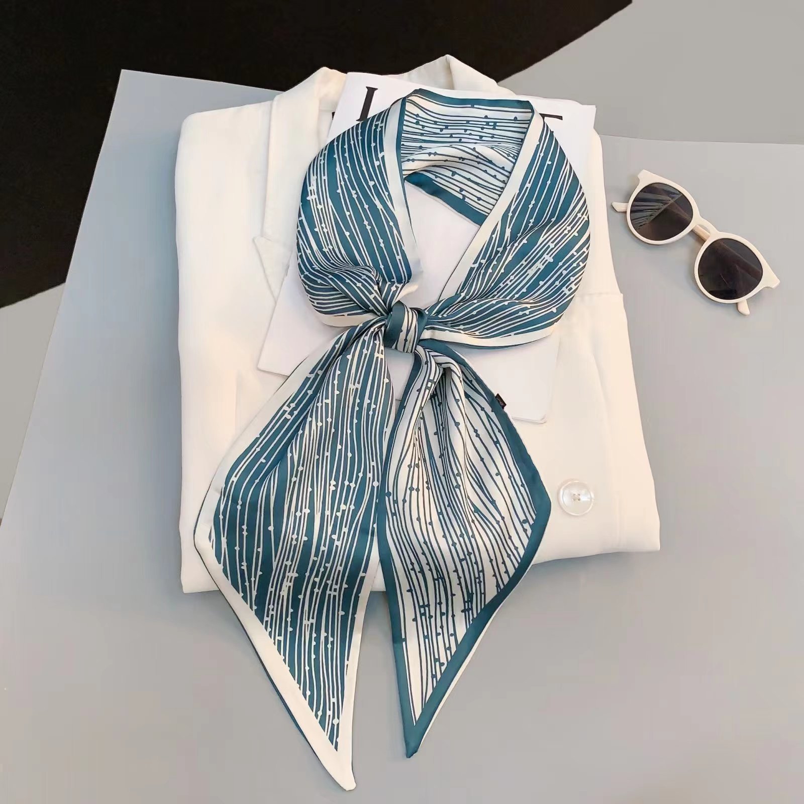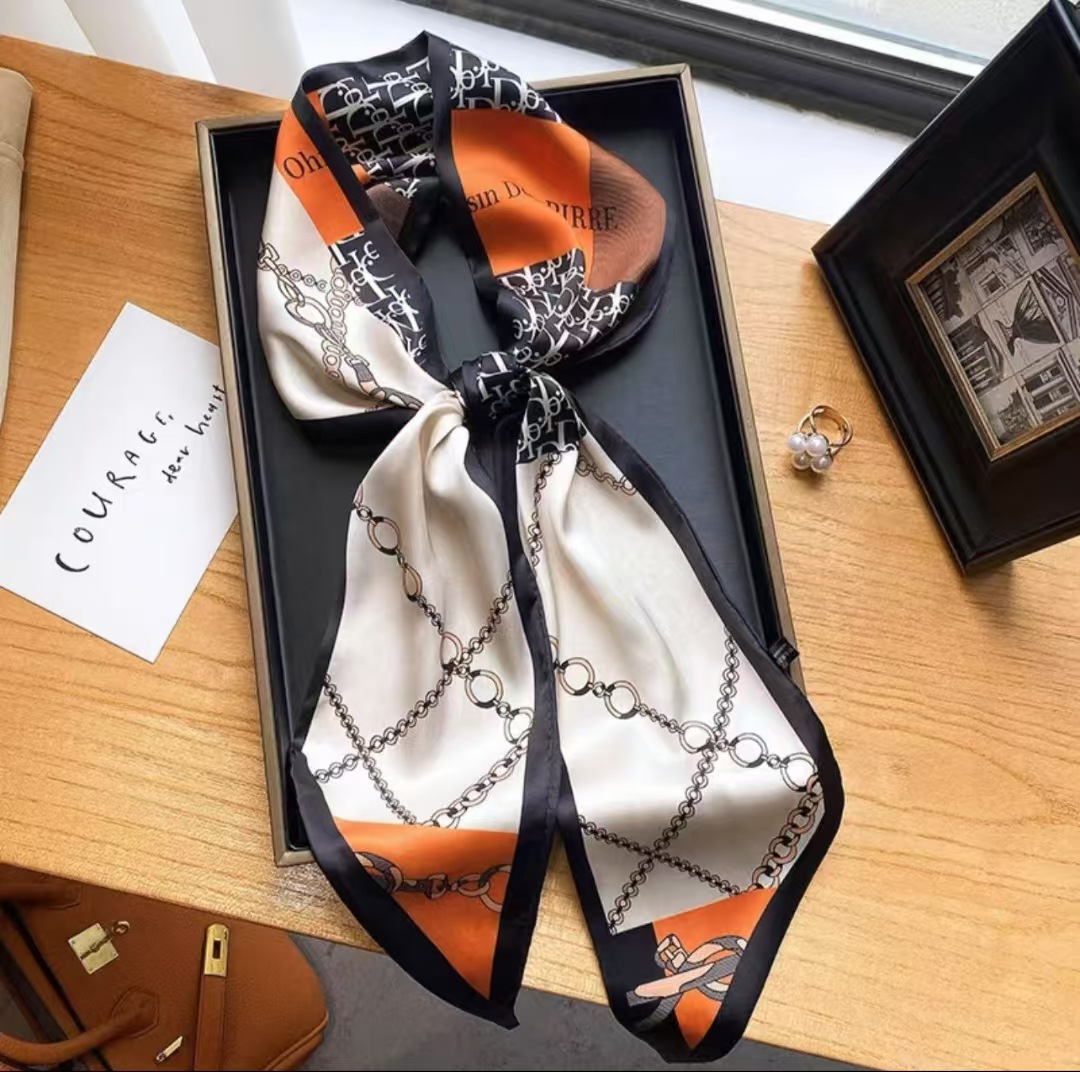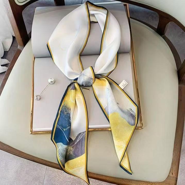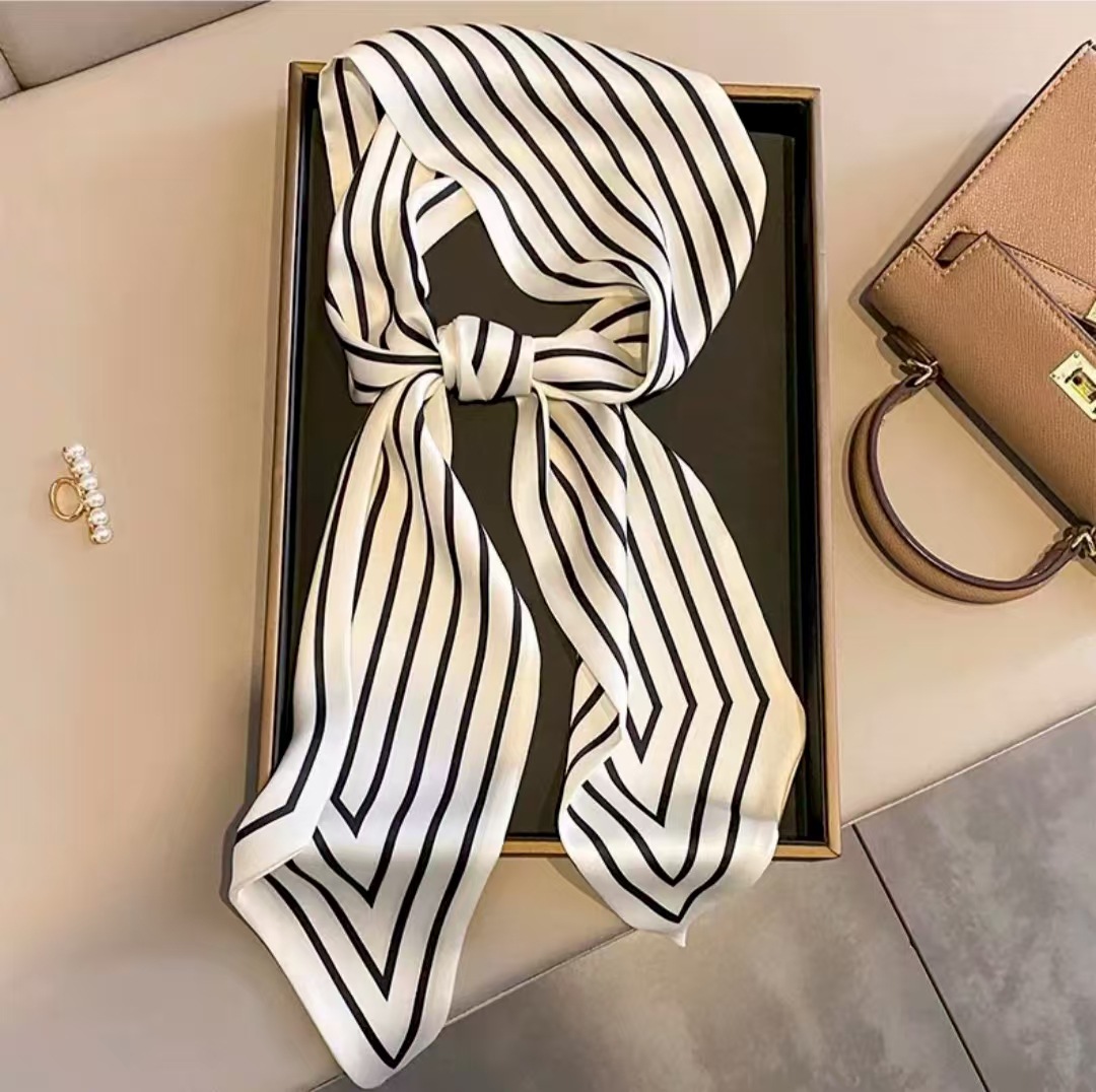Тонкий узкий длинный шелковый шарф весной и осенью дикий женский 2023 тысячи птиц профессиональный декоративный маленький шарф