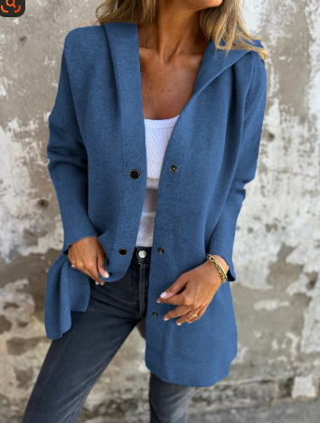 2024 Amazon AliExpress Independent Station _ Осень и зима сплошные повседневные однобортные куртки с капюшоном