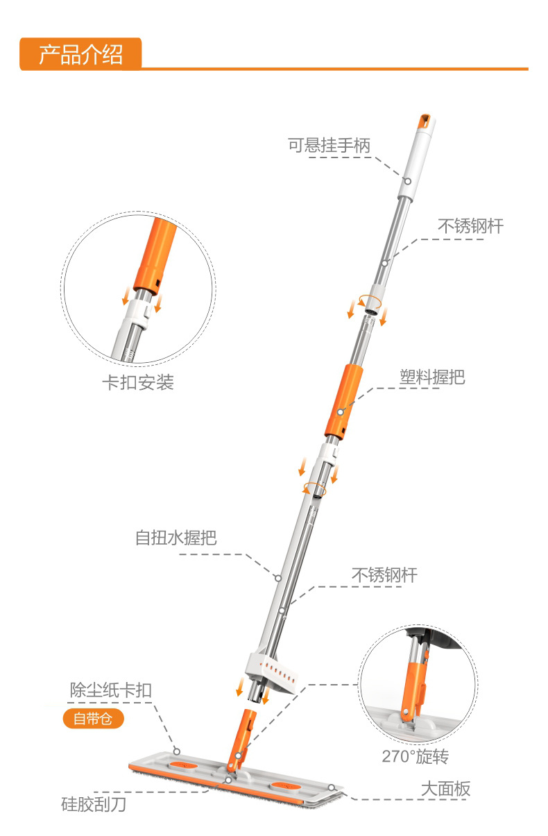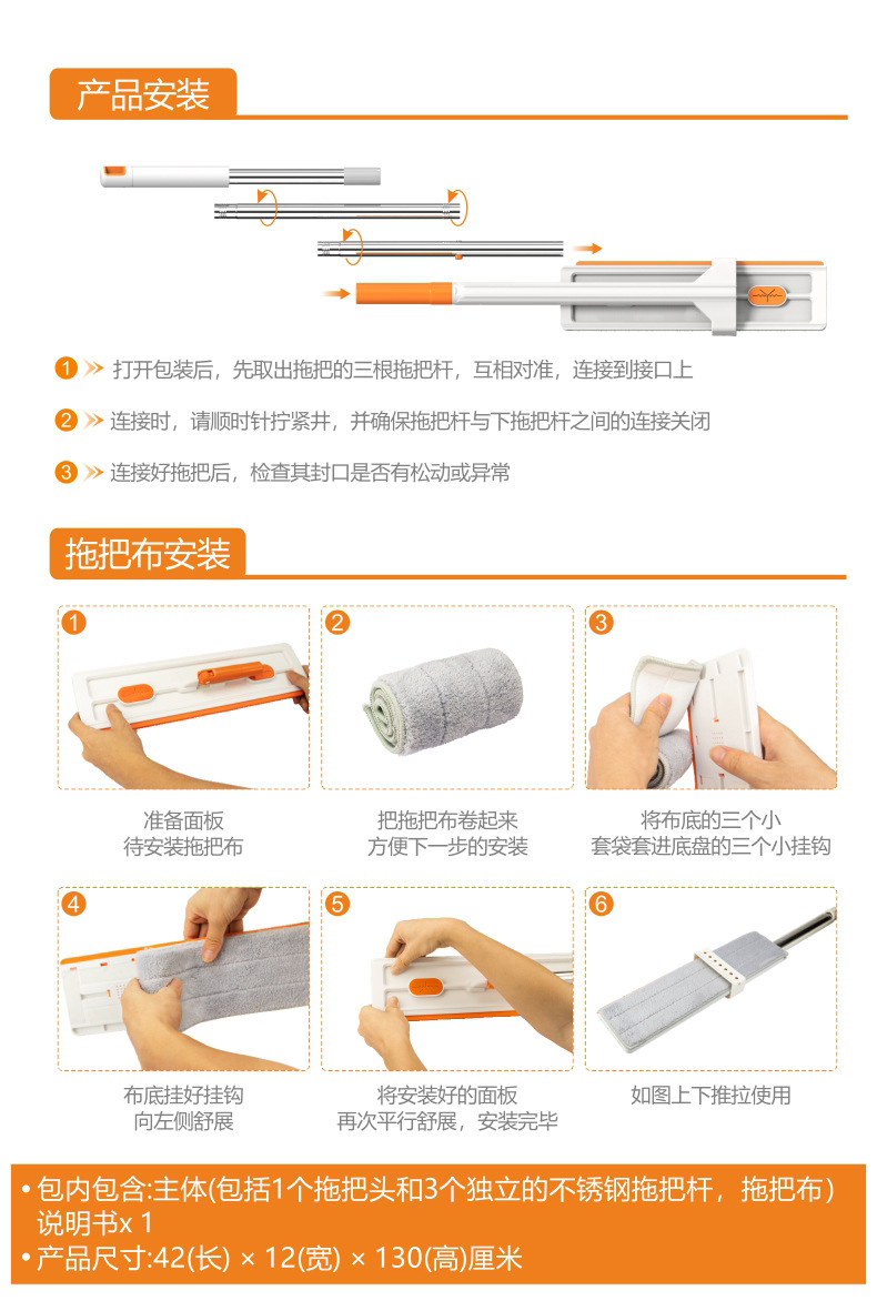 Большая панель 42 см без ручной стирки швабра ленивый плоская швабра сухое и влажное бытовое швабру