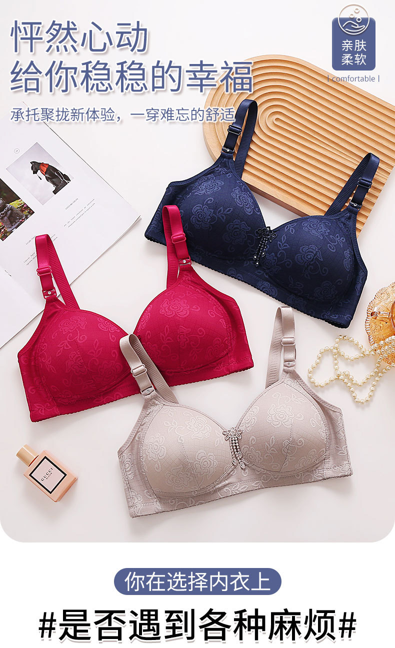 Трансграничный большой размер жаккарда тонкая чашка с тремя рядами среднего и пожилого возраста, чтобы собрать полную чашку бюстгальтер без магнитного без стального кольца Сексуальное нижнее белье