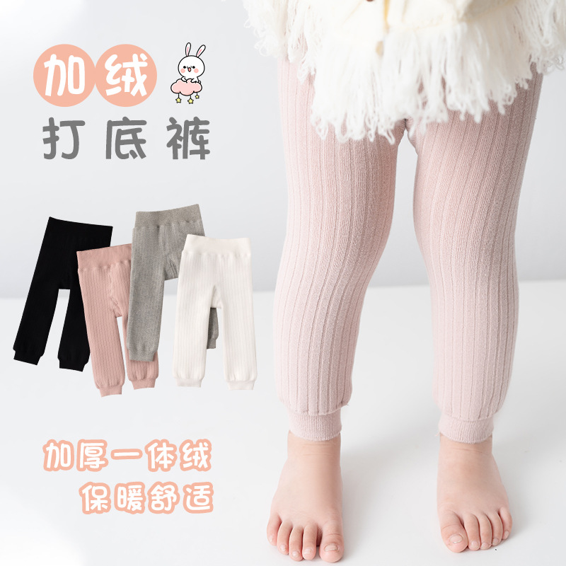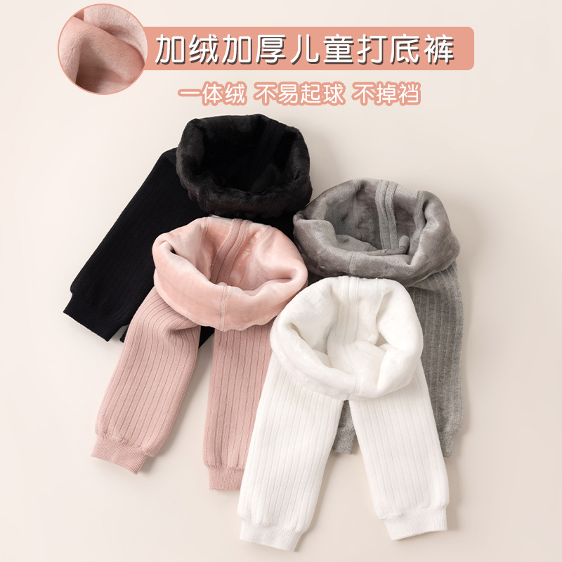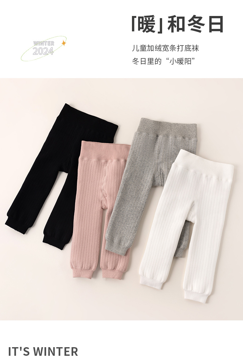 2024 зимние леггинсы для девочек все в одном носить плюшевые толстые и вертикальные полосатые детские теплые брюки для мальчиков