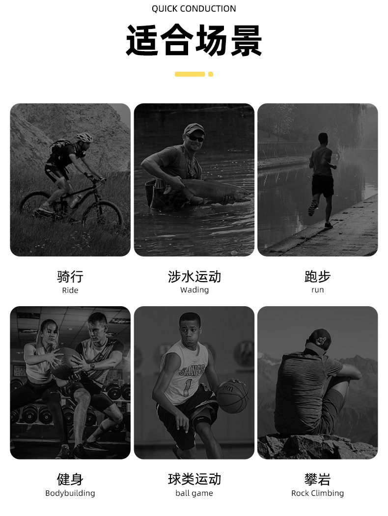 Велоспорт; Виды спорта на льду и снегу; экстремальные испытания; Пеший туризм и кемпинг; стрельба спорт; самооборона боевых искусств; танцевальный спорт; Баскетбольные упражнения; Развлекательная техника Venue; рыбалка спорт; Настольный теннис и теннис с перьями; Другие игры в мяч; Упаковка, защита; другое