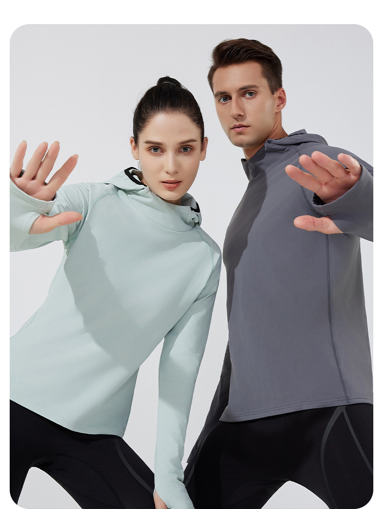 Осенние и зимние новые пары мужчин и женщин с капюшоном плюс бархатные спортивные топы для йоги на открытом воздухе повседневные куртки для бега на открытом воздухе с длинными рукавами
