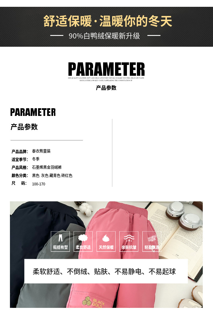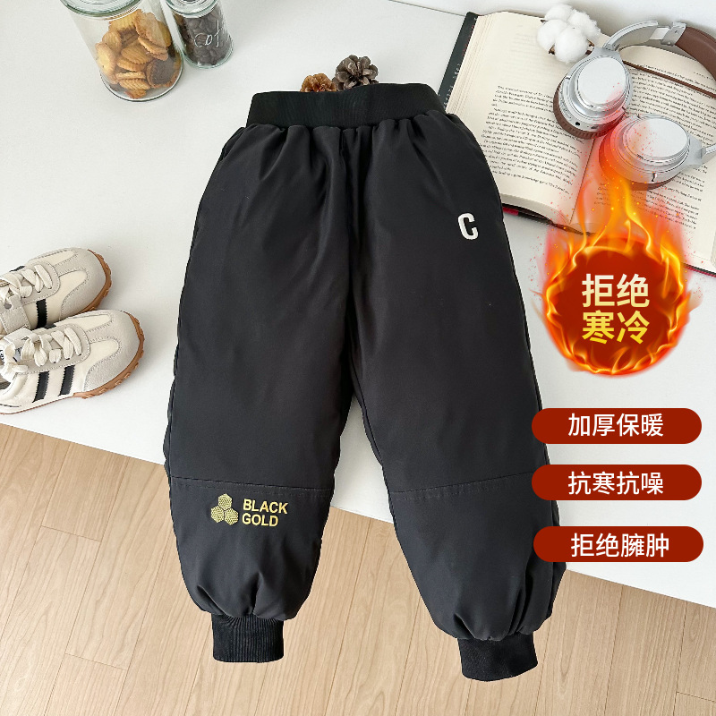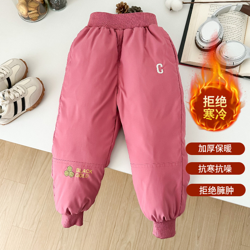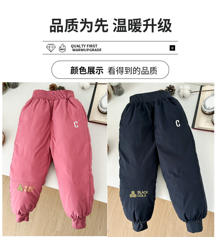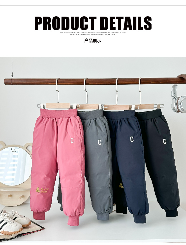 2024 новые детские пуховые брюки для мальчиков и девочек зимой водонепроницаемые толстые лыжные брюки черный золотой белый утка пух брюки