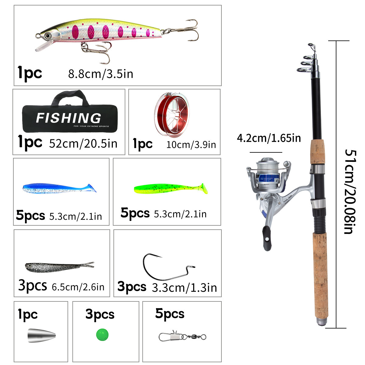 2.1m Удочка + Рыболовная катушка + Рыболовная сумка + Коробка для аксессуаров для рыболовных наживок