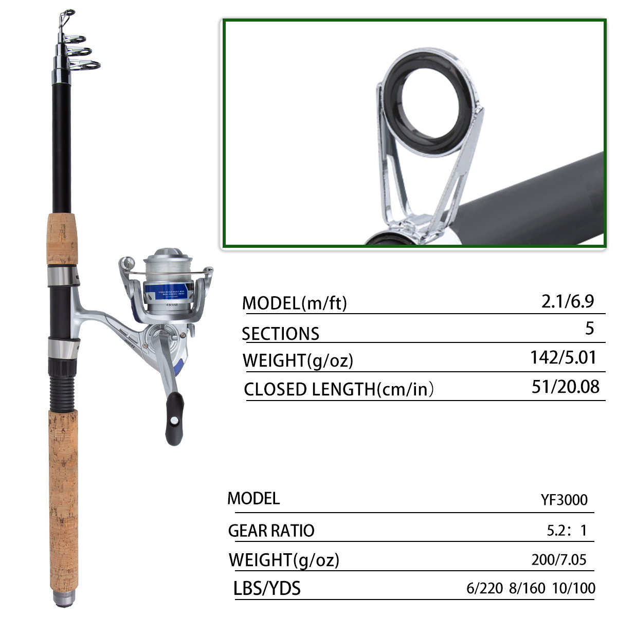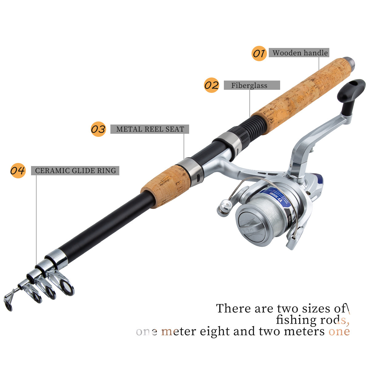 Трансграничный один кусок высаски 2,1 м телескопический лудок полный набор морских шестов деревянная ручка удочка набор рыболовных снастей оптом