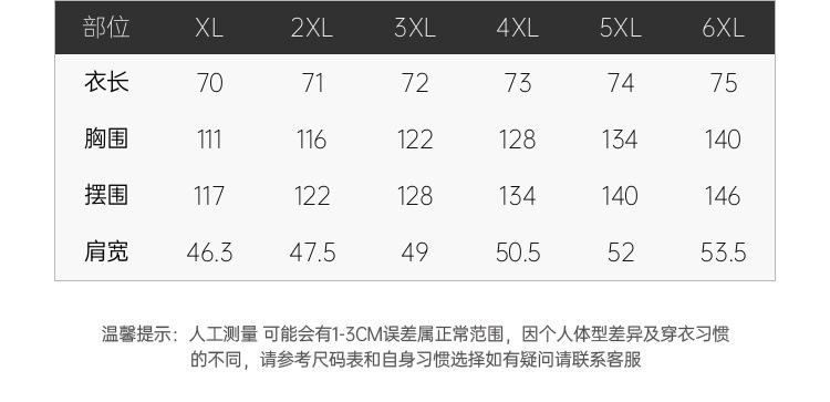 XL; 2XL; 3XL; 4XL; 5XL; 6XL; L