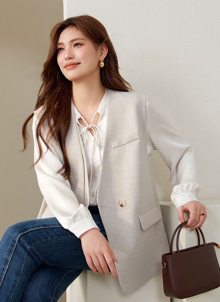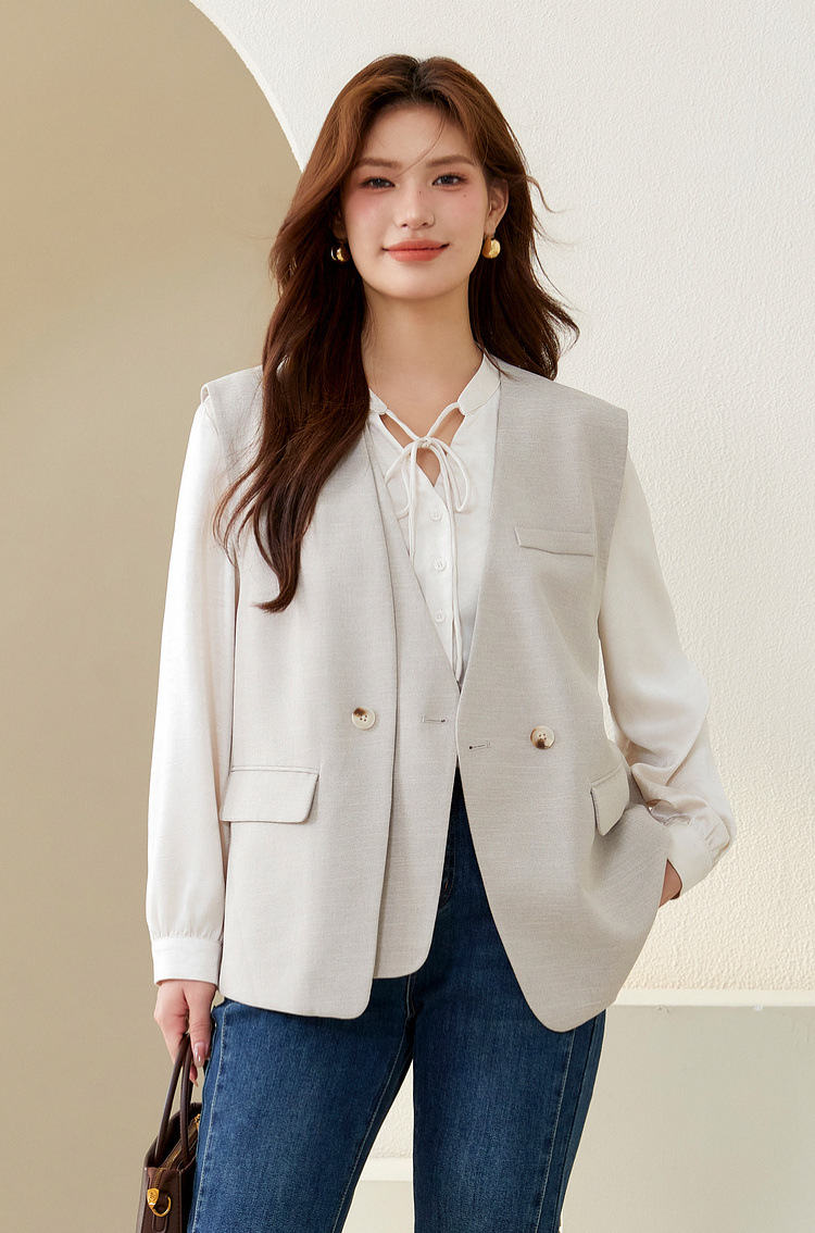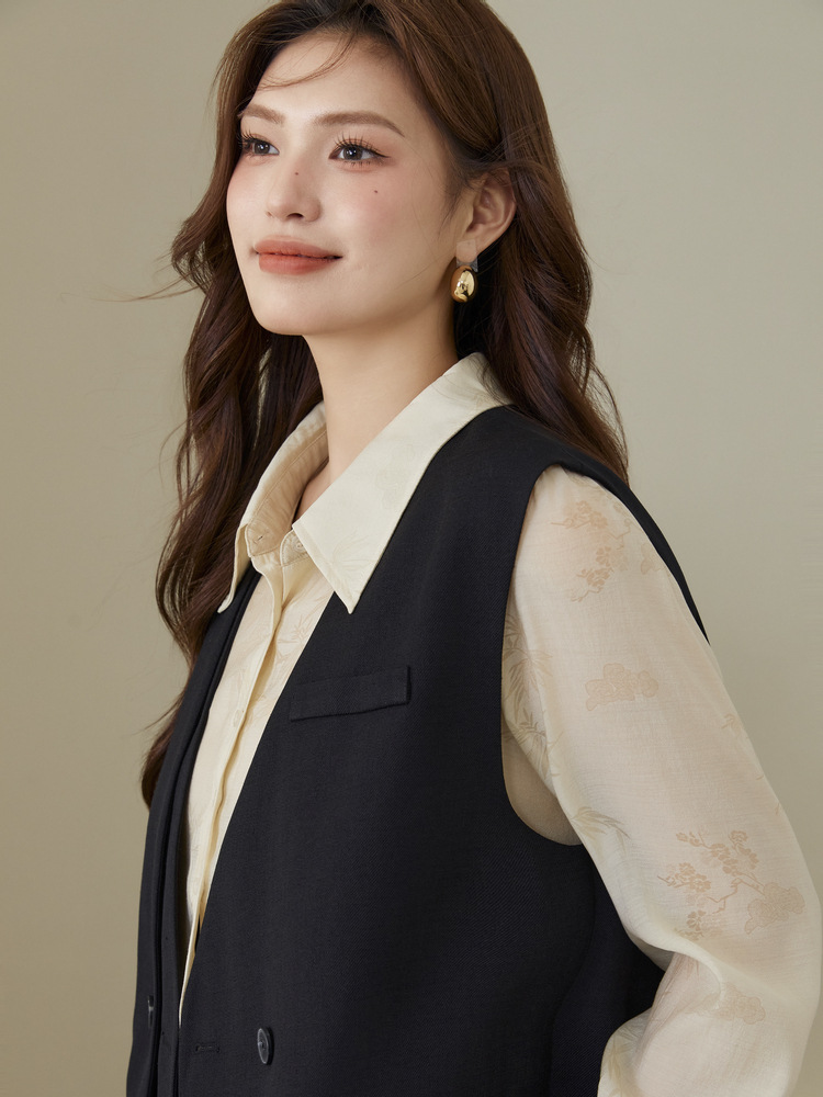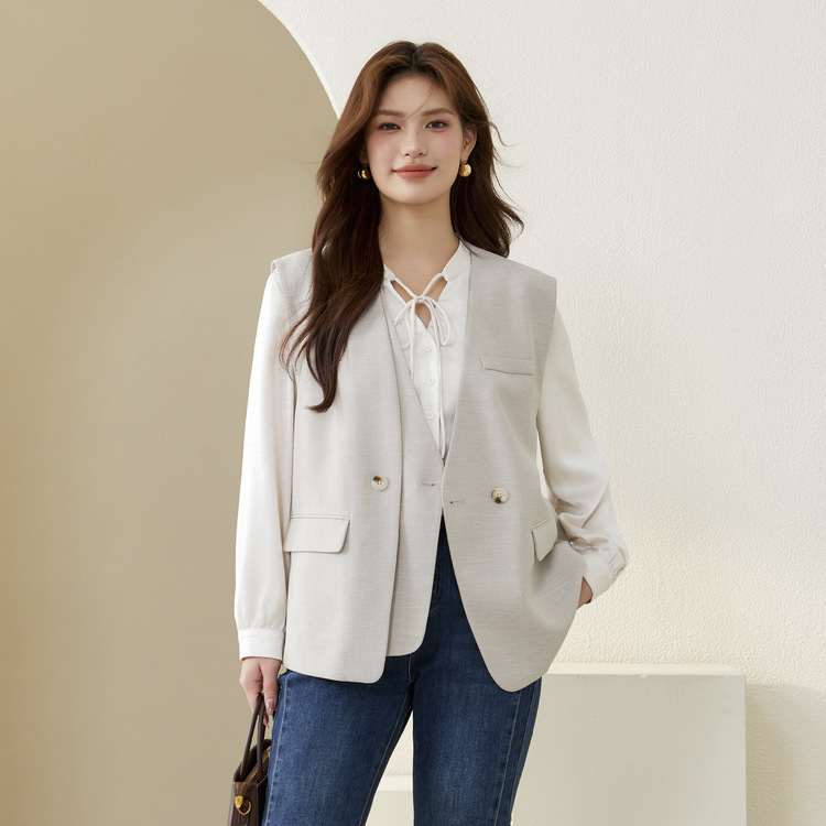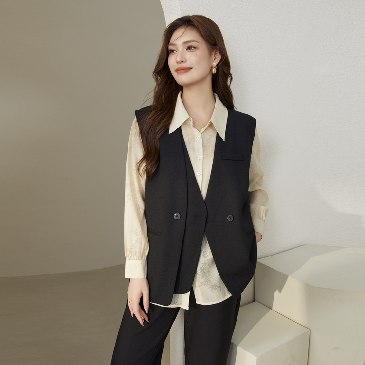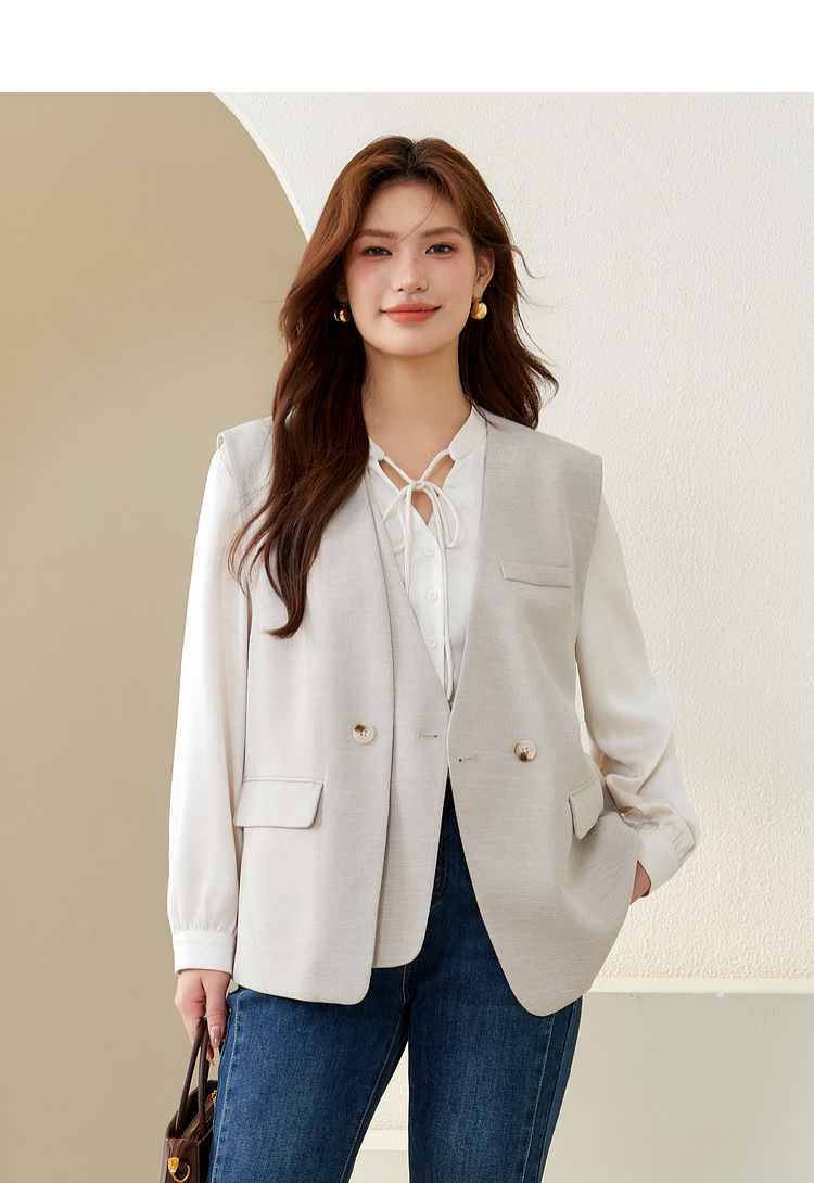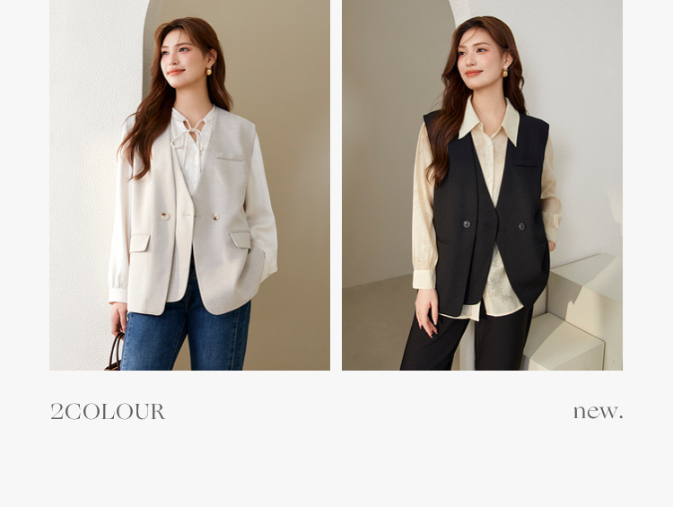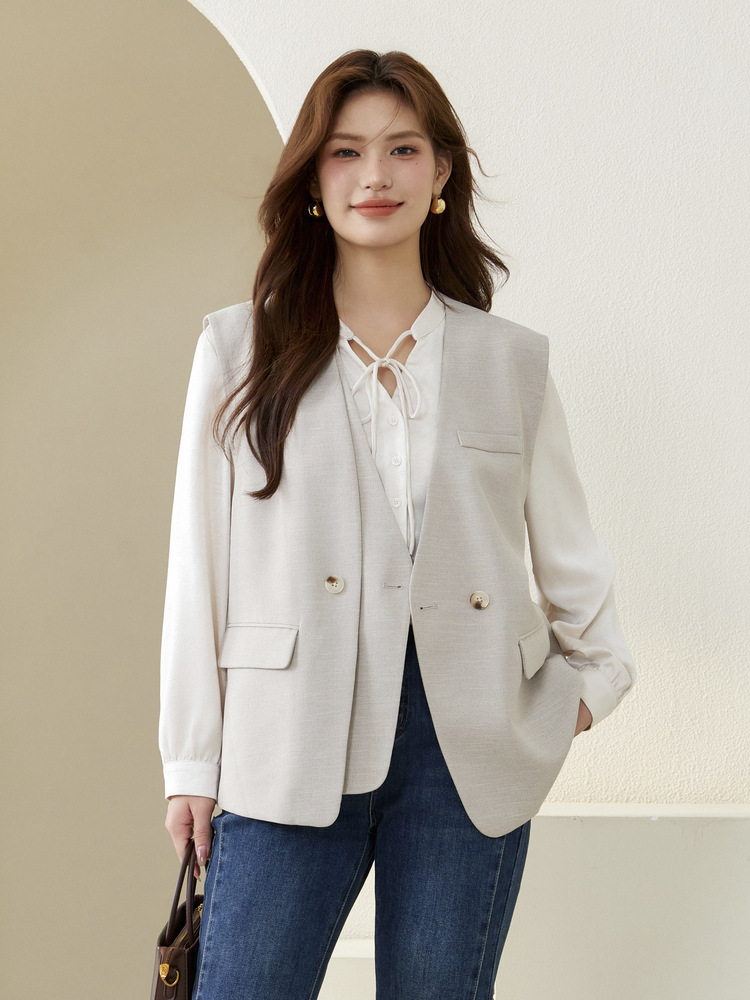 Слепое шоу большого размера женского дизайна поддельные две части индивидуальности модный темперамент повседневный жилет жирный mm2024 осенний новый