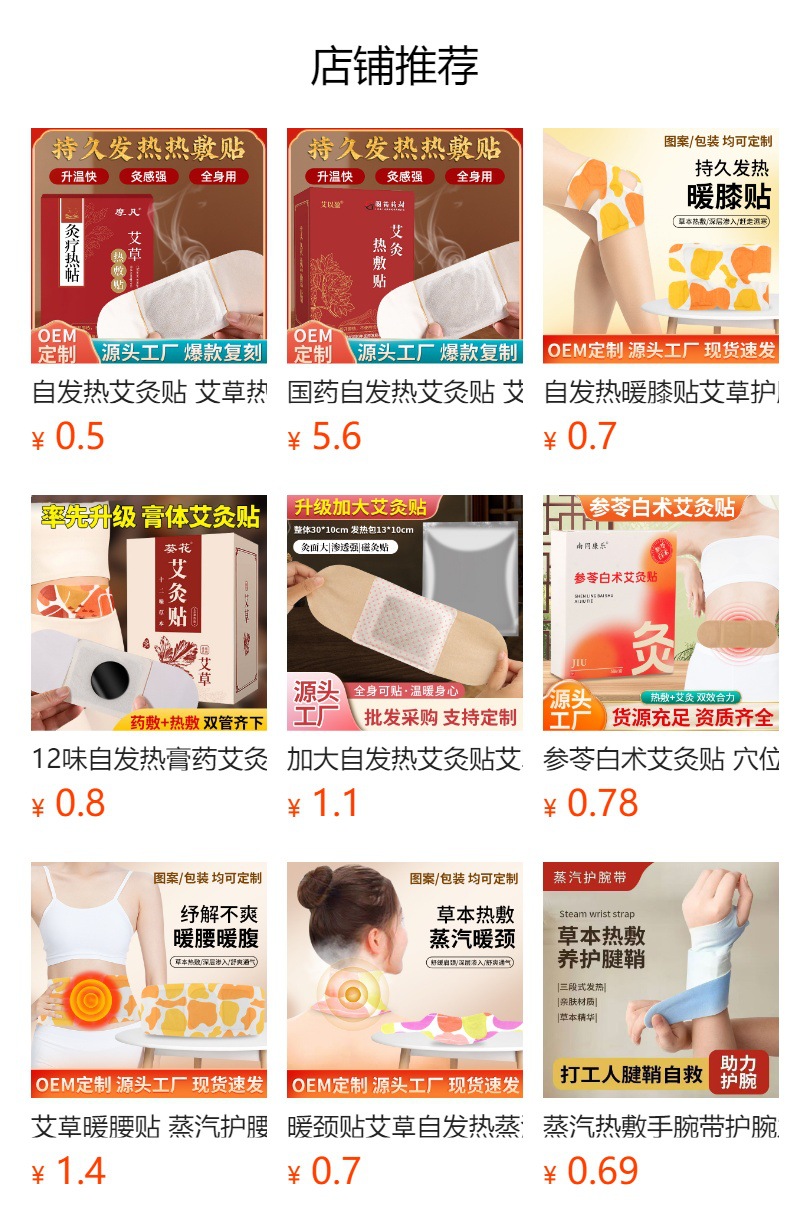 Пластырь с эфирным маслом «Три крылья» (один пластырь); Пластырь с эфирным маслом Nantong Kangle Three Wings (5 пластырей в упаковке); Термальный пластырь для прижигания (одиночный пластырь); Пластырь для моксотерапии Shenling Atractylodes (один пластырь); Пластырь для прижигания с магнитной терапией дальнего инфракрасного диапазона (одиночный пластырь); Пластырь для прижигания розы Дамаска (одиночный пластырь); Пост General Teng Big Belly (одиночный пост); Цветной пластырь для шеи [один пластырь]; Очень большой пластырь для поясницы с настоящим полынью (27*14 см); Настоящий согревающий пластырь для коленей с полынью