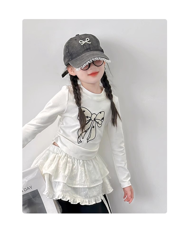 Футболка с длинными рукавами для девочек осень 2024 новый детский ранний осенний топ