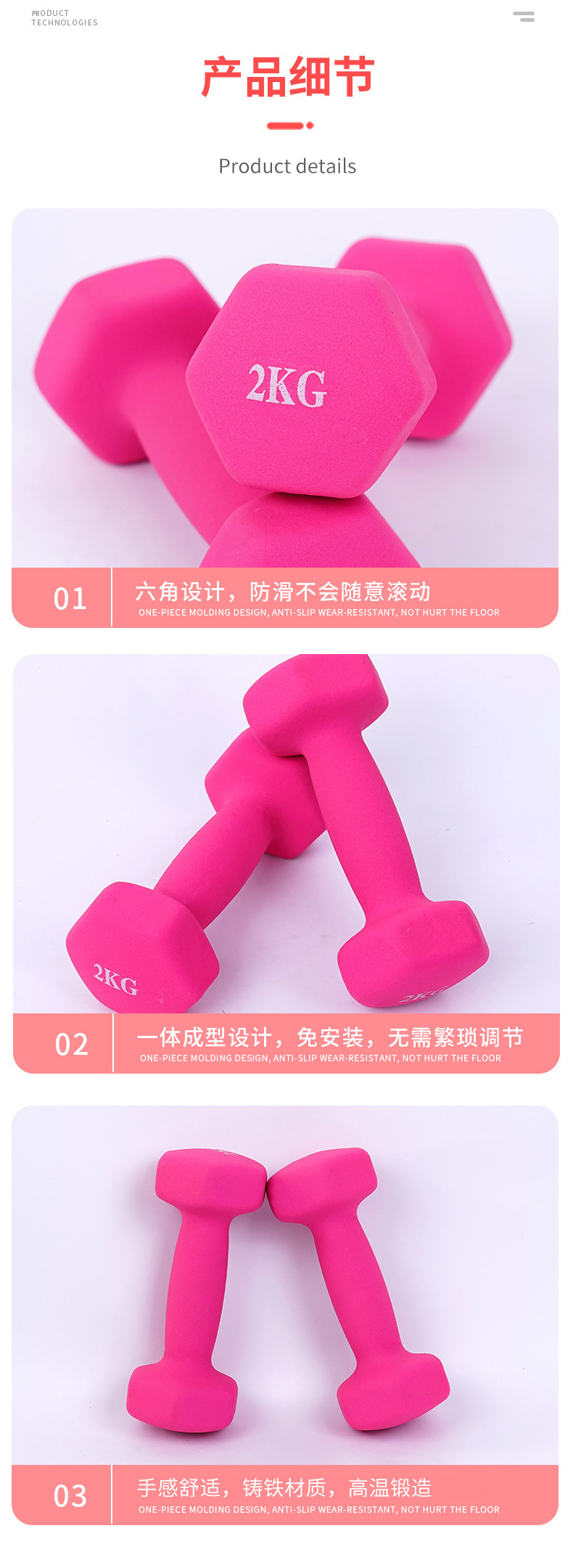Трансграничная оптовая продажа матовая гладкая шестигранная пластиковая ручная колокольчик для женщин фитнес-оборудование чугунная резиновая пластиковая гантель