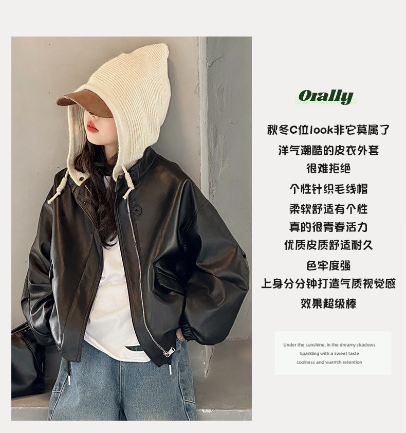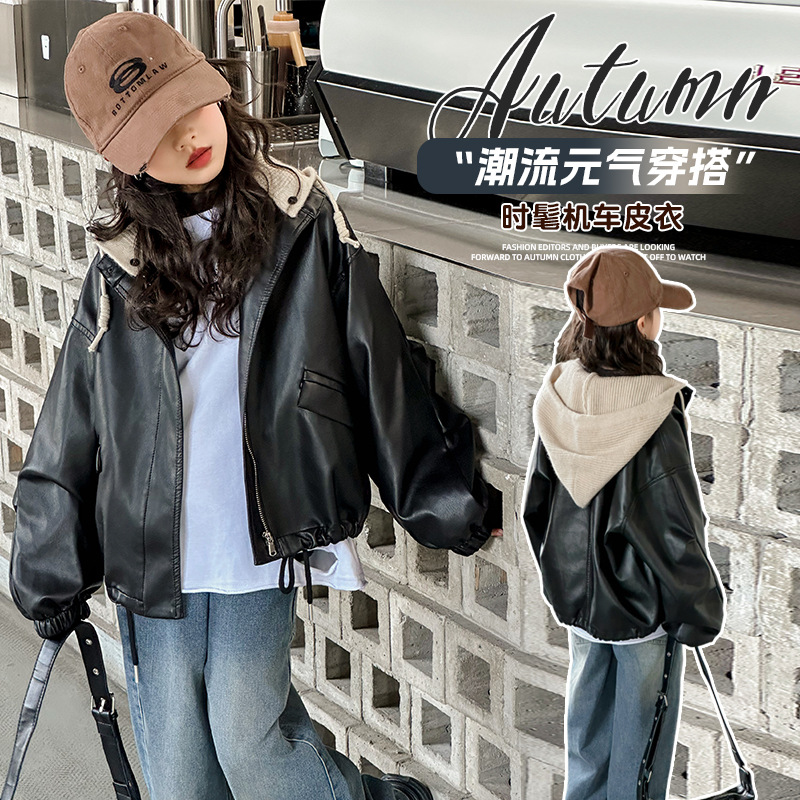 Девушки осенняя куртка новая китайская детская свободная весенняя и осенняя кожаная куртка маленькая девочка с капюшоном