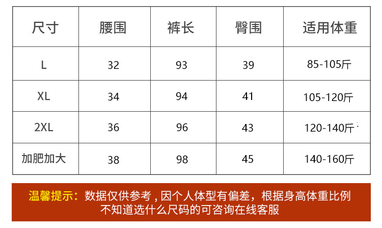 L [рекомендуется 42.5-52.5kg ]; XL [рекомендуется 52.5-60kg ]; XXL [рекомендуется 60-70kg ]; XXXL [рекомендуется 70-80kg ]