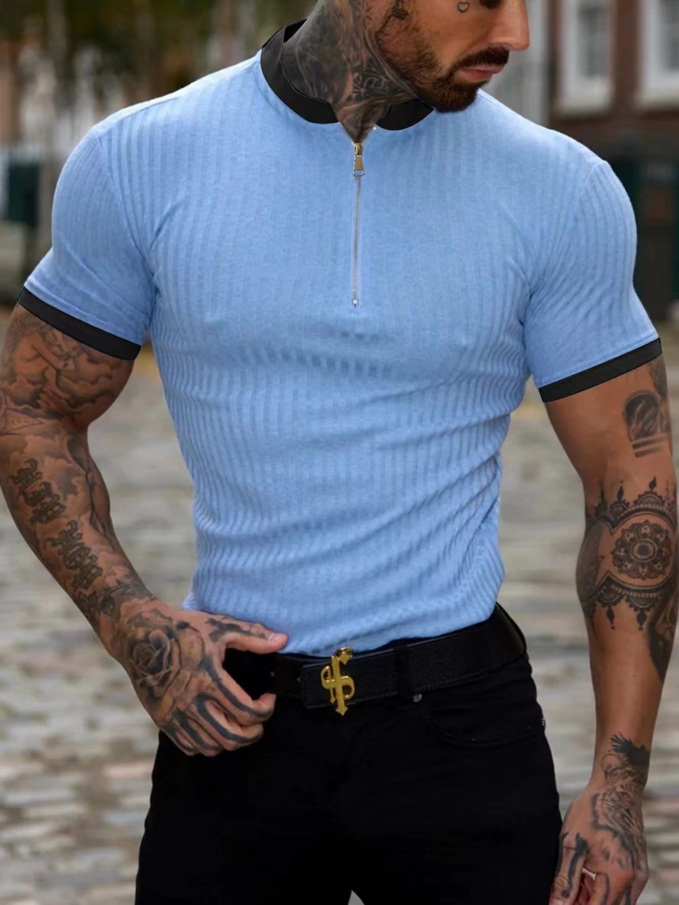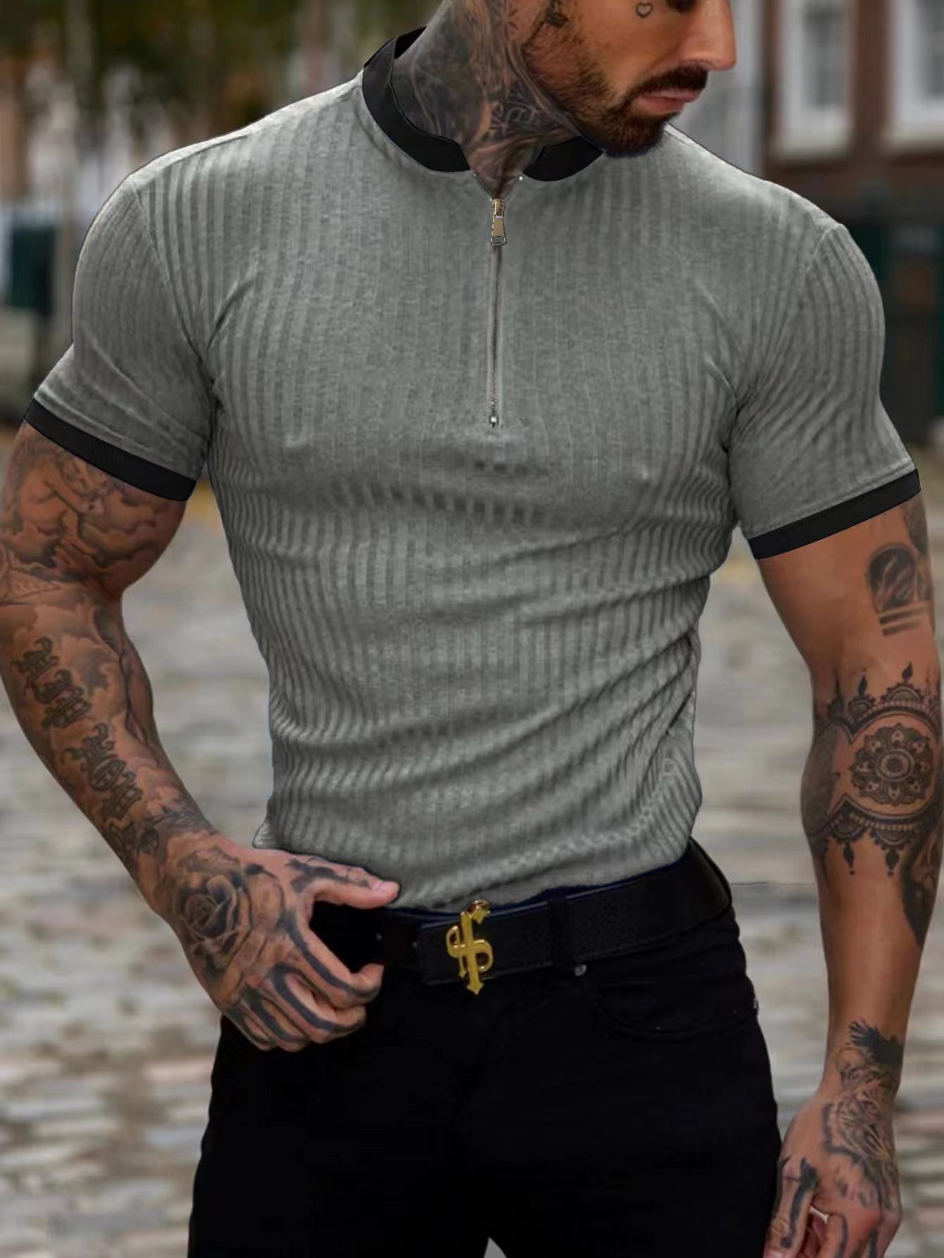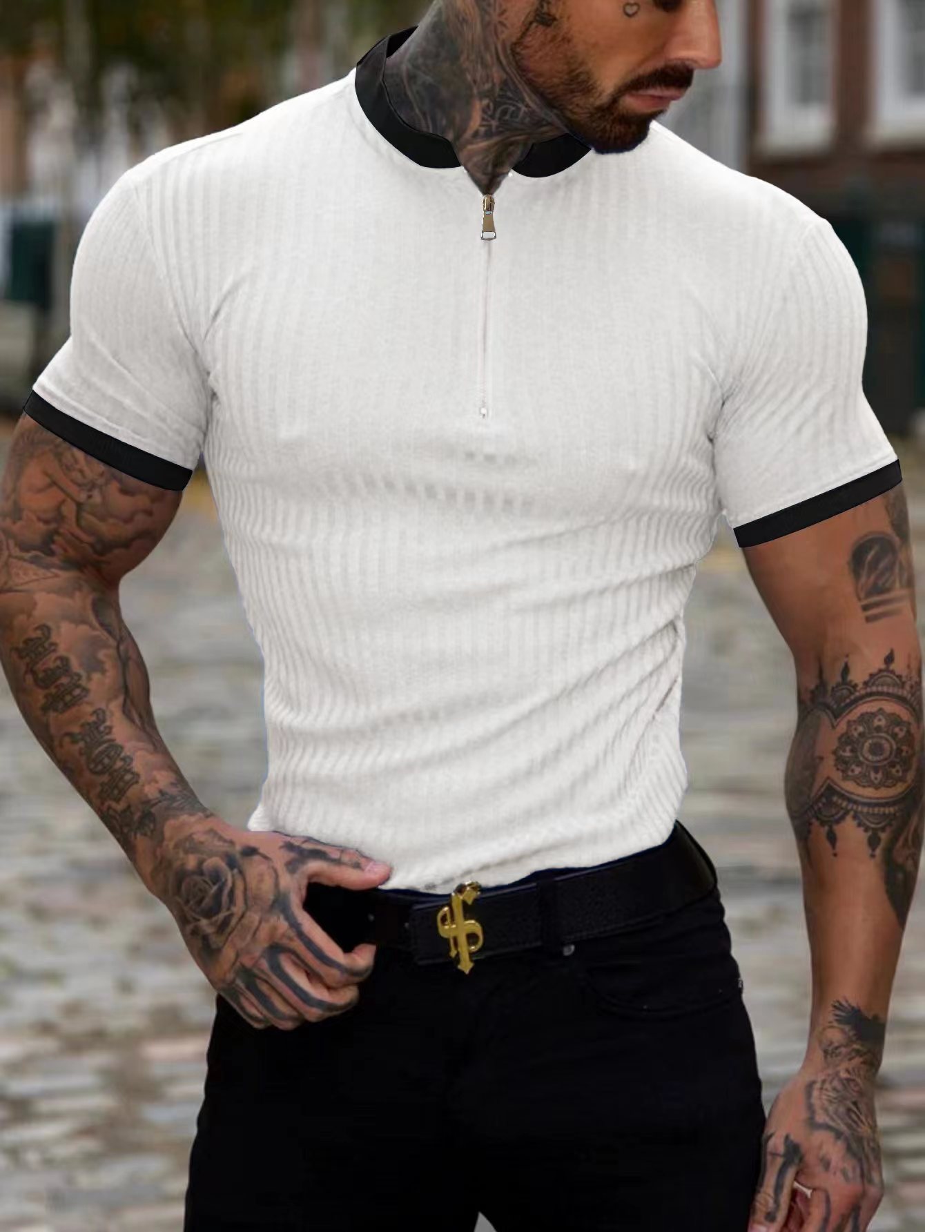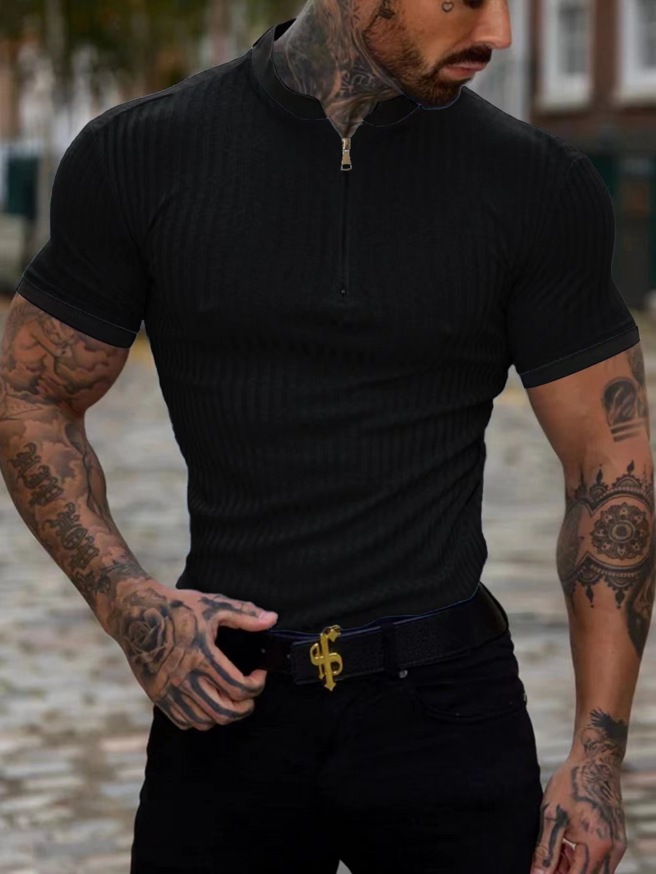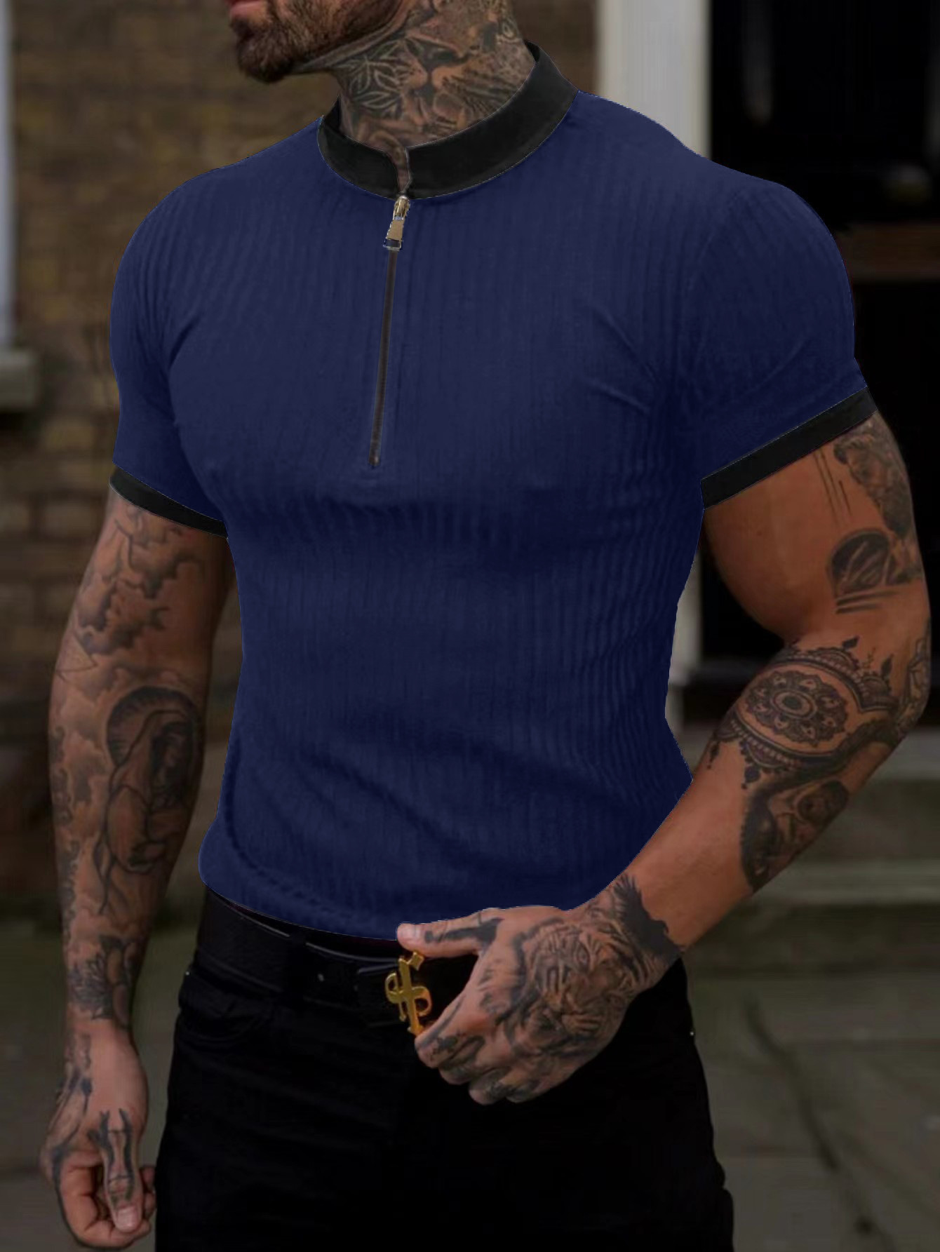 2024 Летний новый мужской трансграничный американский сплошной цвет с короткими рукавами обтягивающая спортивная футболка Генри