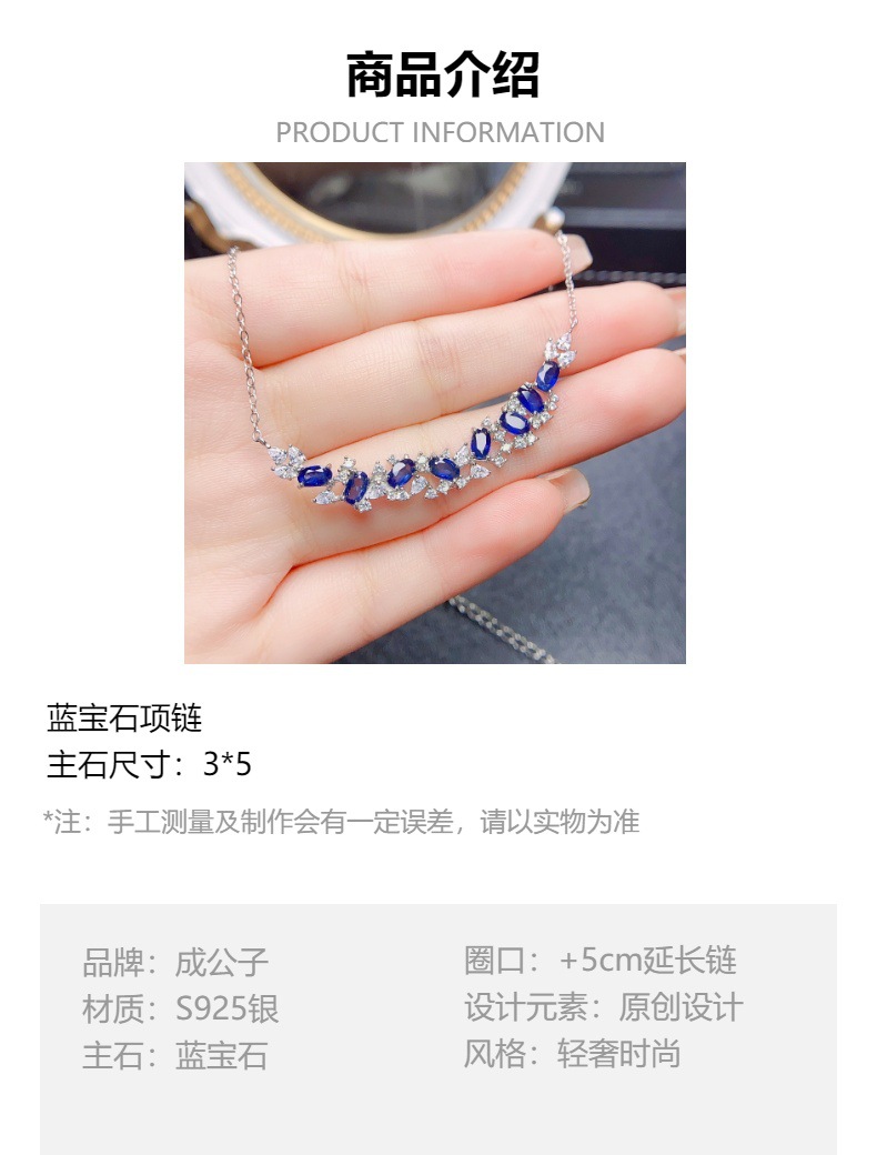 Заводская оптовая продажа натурального сапфирового ожерелья S925 Серебряная инкрустация основного камня 3*5 Горячие продажи в Европе и Америке