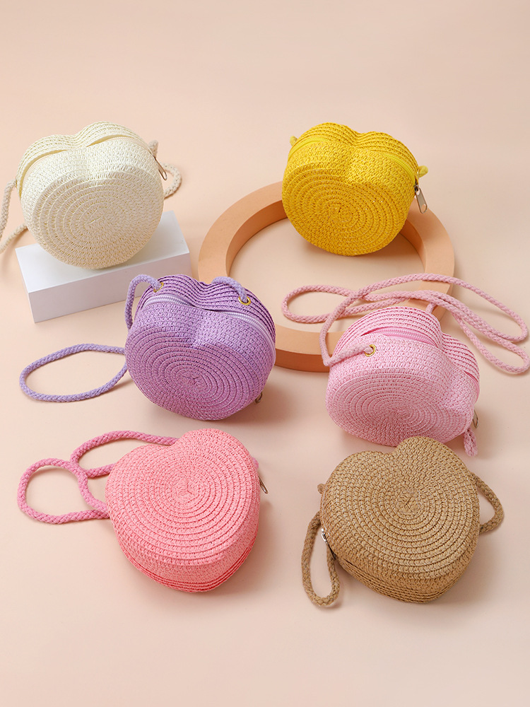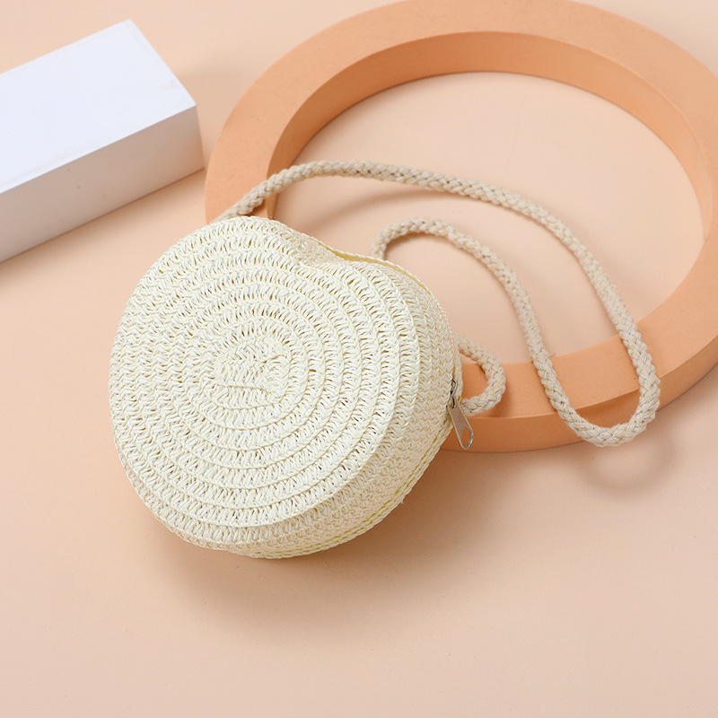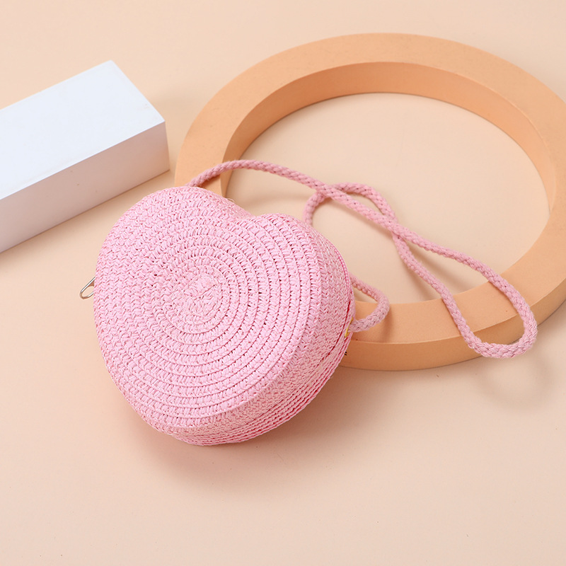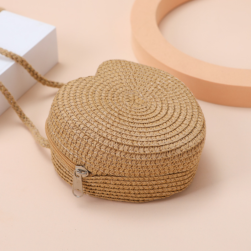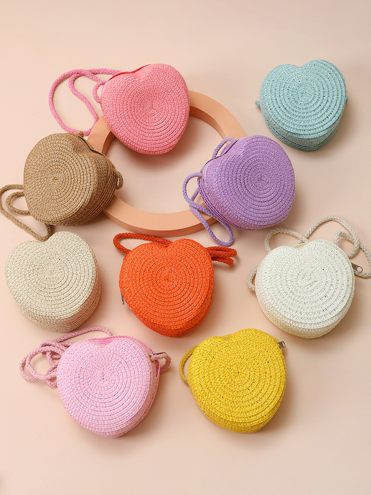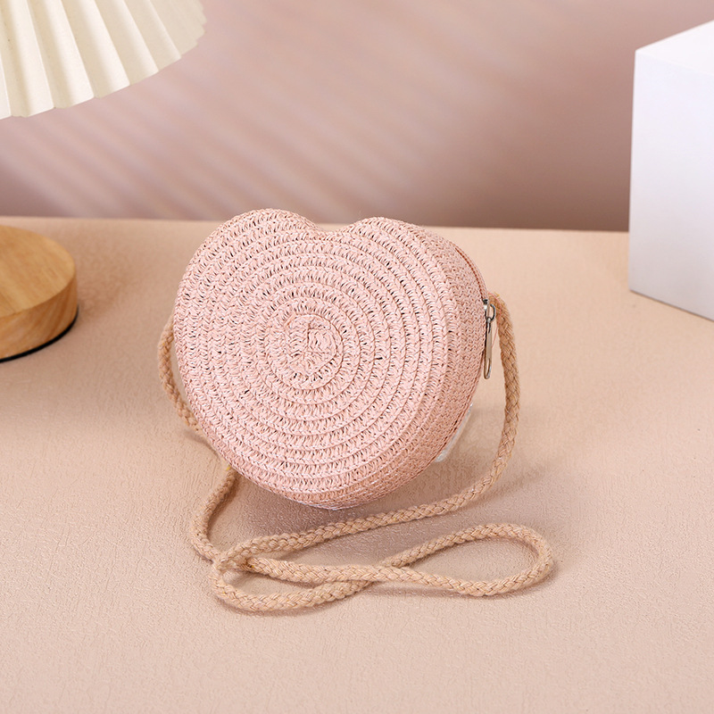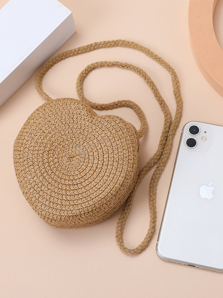 Пляжная сумка из соломы 2025: новая, милая, в форме сердца, женская сумка через плечо, маленькая сумочка, мини-кошелек для монет