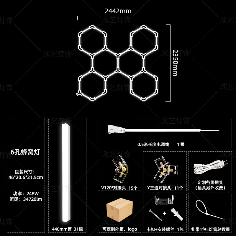 2025 новый фонарь для автомойки светодиодный парикмахерская офис потолок гараж 6500K улья шестиугольная лампа